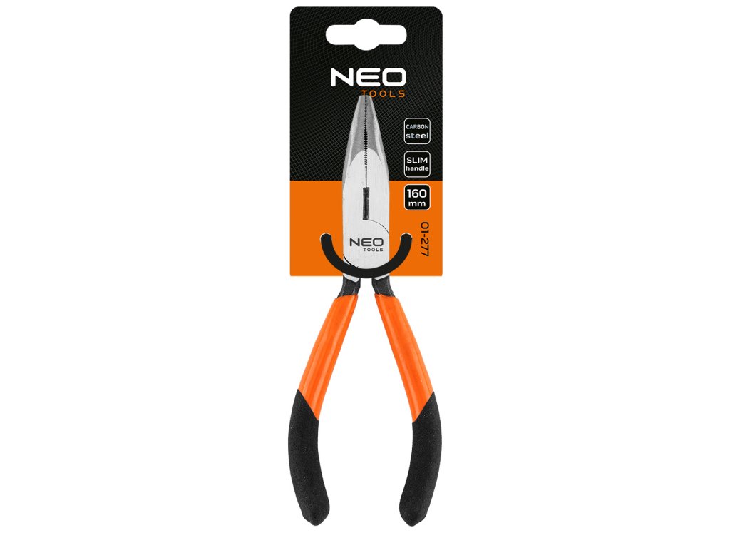 Podlhovasté ohnuté kliešte 160 mm 01-277 od spoločnosti NEO TOOLS sú vysokokvalitným univerzálnym nástrojom patriacim do série klieští. Sú vyrobené z odolného materiálu CS a majú tenkú rukoväť z PVC. Rukoväť má protišmykové vlastnosti vďaka svojmu štruktúrovanému dizajnu s istou nohou. Podlhovasté ohnuté kliešte značky NEO TOOLS sú odolné voči chemikáliám - tukom, olejom a pohonným hmotám. Osvedčia sa pri mnohých rôznych profesionálnych prácach.