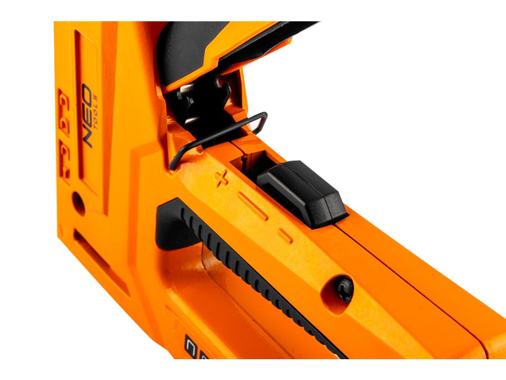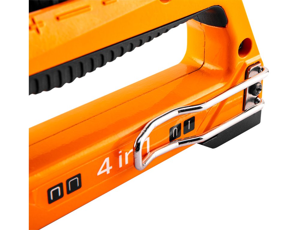 Zošívačka na čalúnenie NEO 4 v 1 (ref. 16-030) pre sponky typu J, G, L, E s veľkosťou od 6 do 14 mm. Je ideálny na čalúnnické práce, dekorácie, upevňovanie fólií, kože a iných materiálov. Vďaka nastaveniu hnacej sily sponky ju možno použiť na tvrdé aj mäkké materiály. Presne zasiahne sponky bez toho, aby ich rozdrvil, a to aj v tvrdých materiáloch. Telo zošívačky je vyrobené z hliníka.