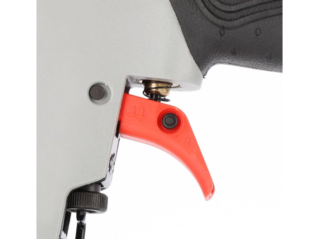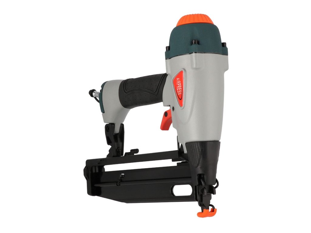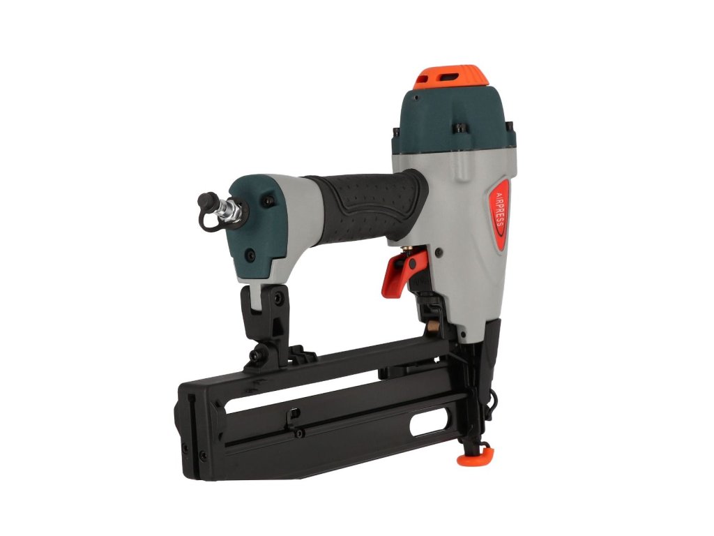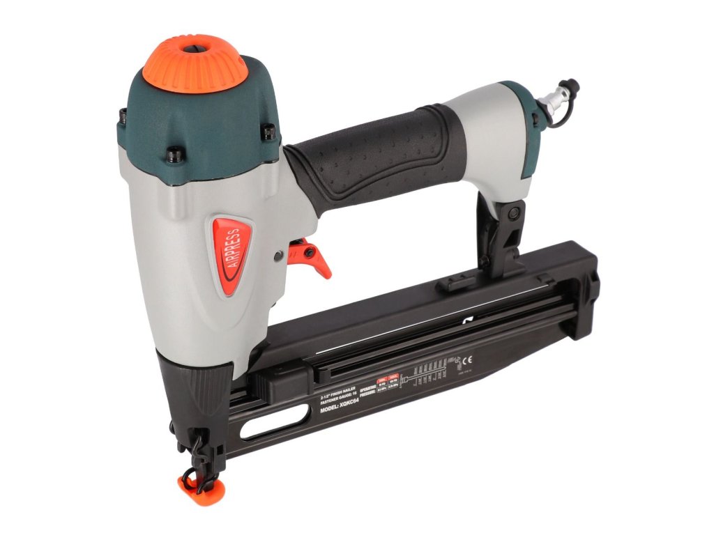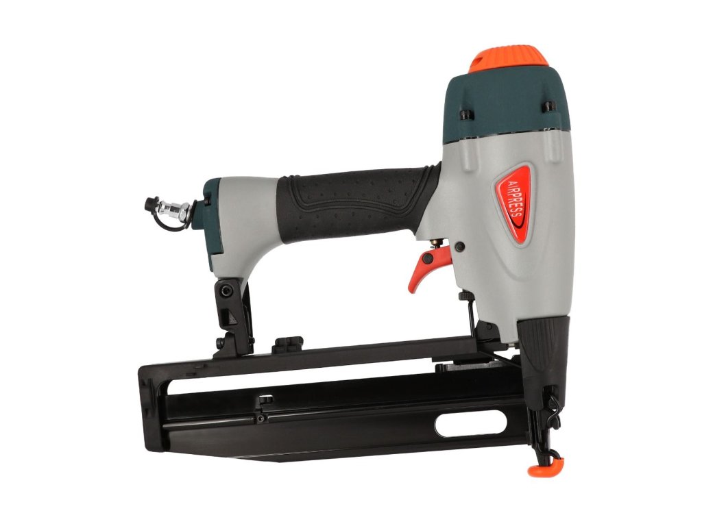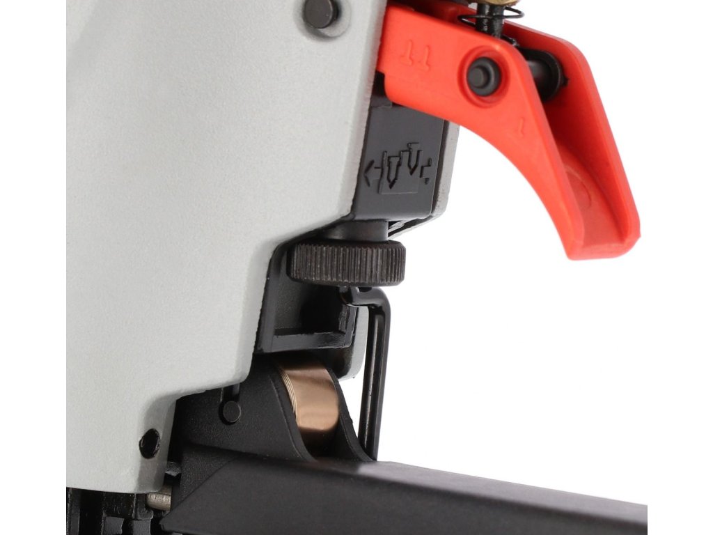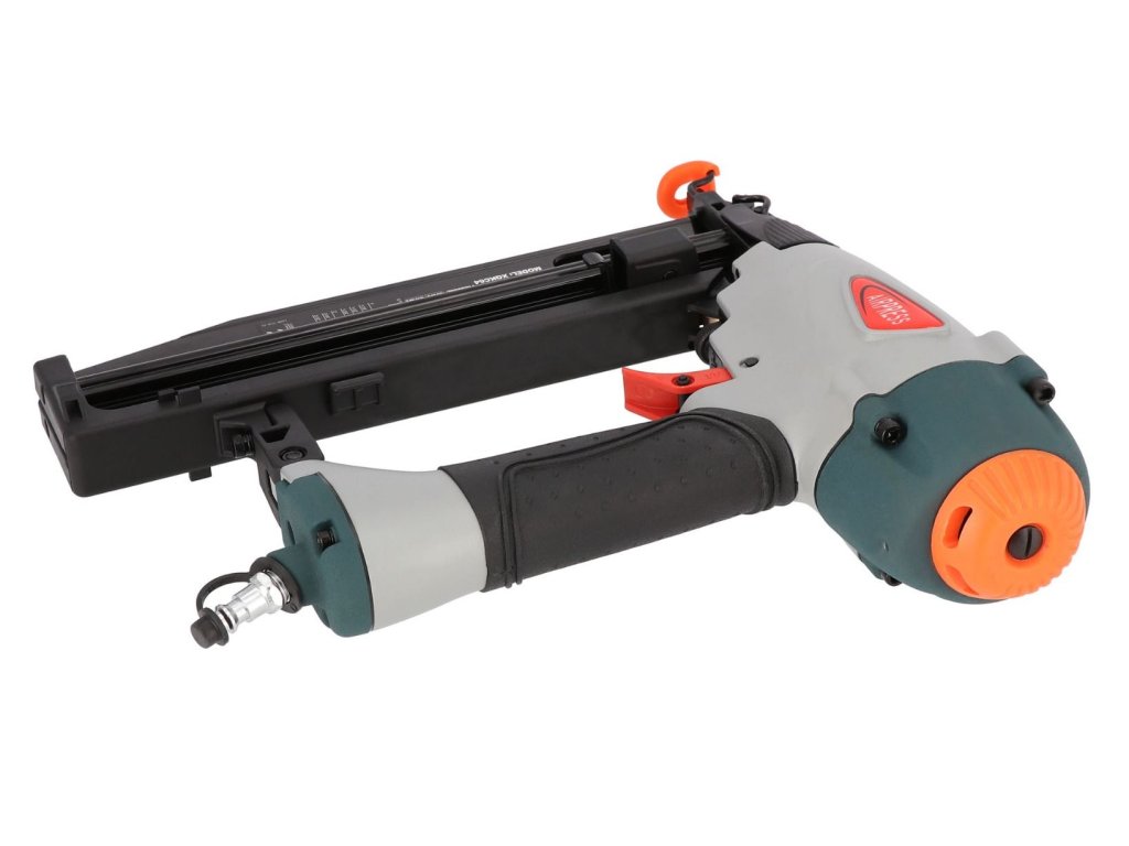 Tento klincovací pistole (model 45438-5) má kapacitu 100 klinčekov a je vhodná na klinčeky s dĺžkou od 20 do 64 mm. Klincovací pistole je mimoriadne vhodná na ťažšie prace v interiéri, ako sú mriežky do stropov, ľahké formy, dvere, podlahy, OSB dosky, skrinky a pod. Klincovací pistole má nastavenie hĺbky, vďaka čomu klinčeky neprepichujú, keď sa používajú na tenké alebo mäkké materiály. Klincovací pistole je vybavená nastaviteľným ventilom na uvoľnenie vzduchu počas používania a má gumovú rukoväť, ktorá zabezpečuje pevný úchop. Okrem toho gumová rukoväť poskytuje chladný prietok stlačeného vzduchu. Klincovací pistole je vybavená ochranou nosa (aby sa predišlo nečakanému uvoľneniu klinčekov). Klincovací pistole má oceľovú rukoväť na prevlečenie (zabráni poškodeniu vodiča v liatine klincovacieho náradia), je vybavená gumou na ochranu, ktorá zabráni poškriabaniu materiálu a nabíjačka ukazuje, koľko klinčekov je ešte k dispozícii. Tento klincovací pistole je dodávaný v robustnom kufríku s príslušenstvom a jasnými pokynmi. Klincovací pistole váži 1,6 kg a pracuje pri maximálnom tlaku 6,5 / 7 barov.
