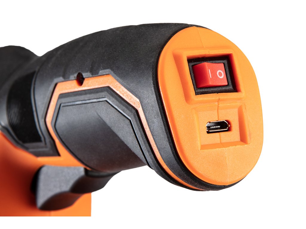 Zošívačka na čalúnenie 4V, napájanie USB (micro USB), Li-ion batéria, 4V, 18650, 1500 mAh, doba nabíjania 5 h, rýchlosť 40 sponiek za minútu, sponky J/53 4-10 mm, klince E max. 10 mm, kapacita zásobníka 40 kusov, certifikát CE