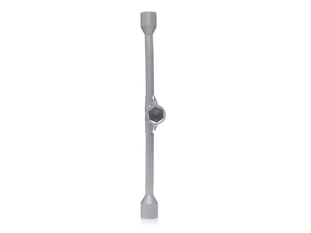 Vysoko kvalitný kľúč odporúčaný na domáce výmeny kolies a ako príslušenstvo pre osobné a dodávkové automobily. Zvládne aj najviac zaseknuté skrutky!!! Má 4 ramená s imbusovými hlavami, 4 metrické veľkosti 17 mm, 19 mm, 21 mm a 23 mm.