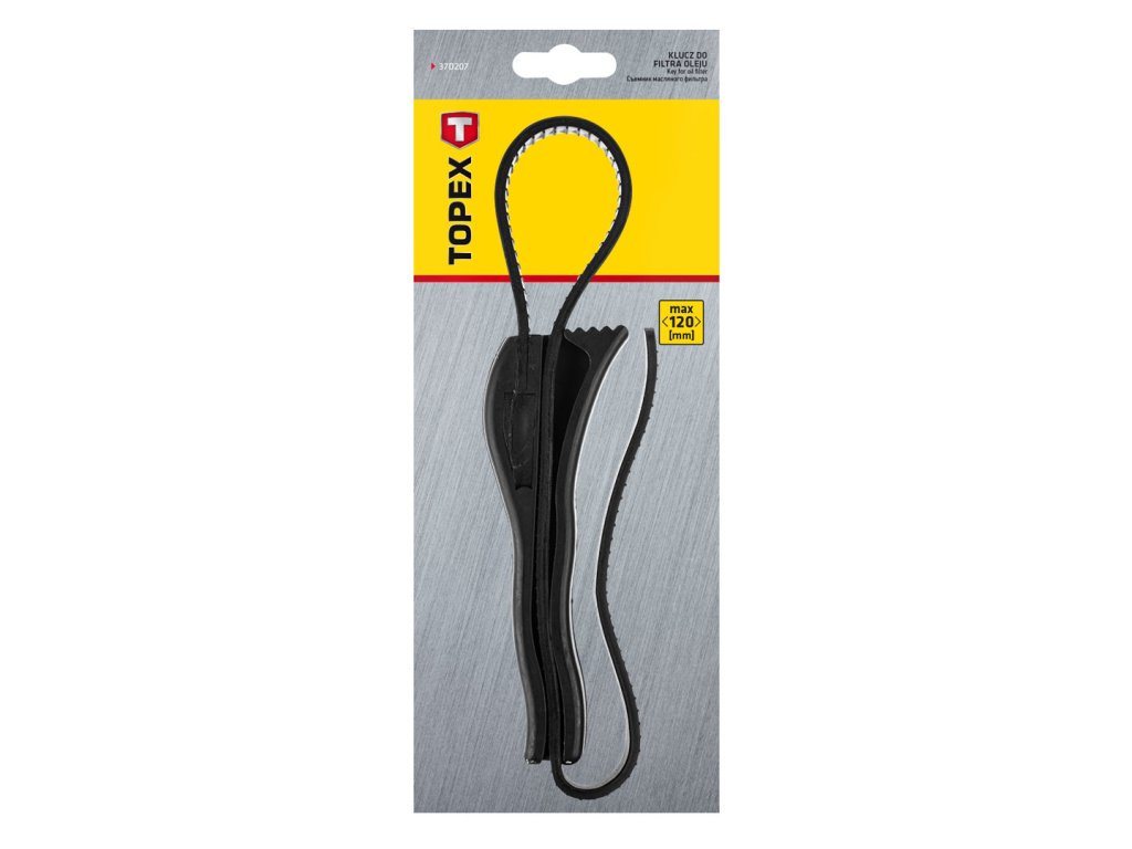 TOPEX kľúč na olejové filtre (ref. 37D207) s remeňovým mechanizmom. Používa sa na odskrutkovanie olejových filtrov a zátok olejovej vane s maximálnym priemerom 120 mm. Pevná konštrukcia rukoväte zaručuje pohodlie a bezpečnosť pri práci. Značka TOPEX je určená pre domácich majstrov.