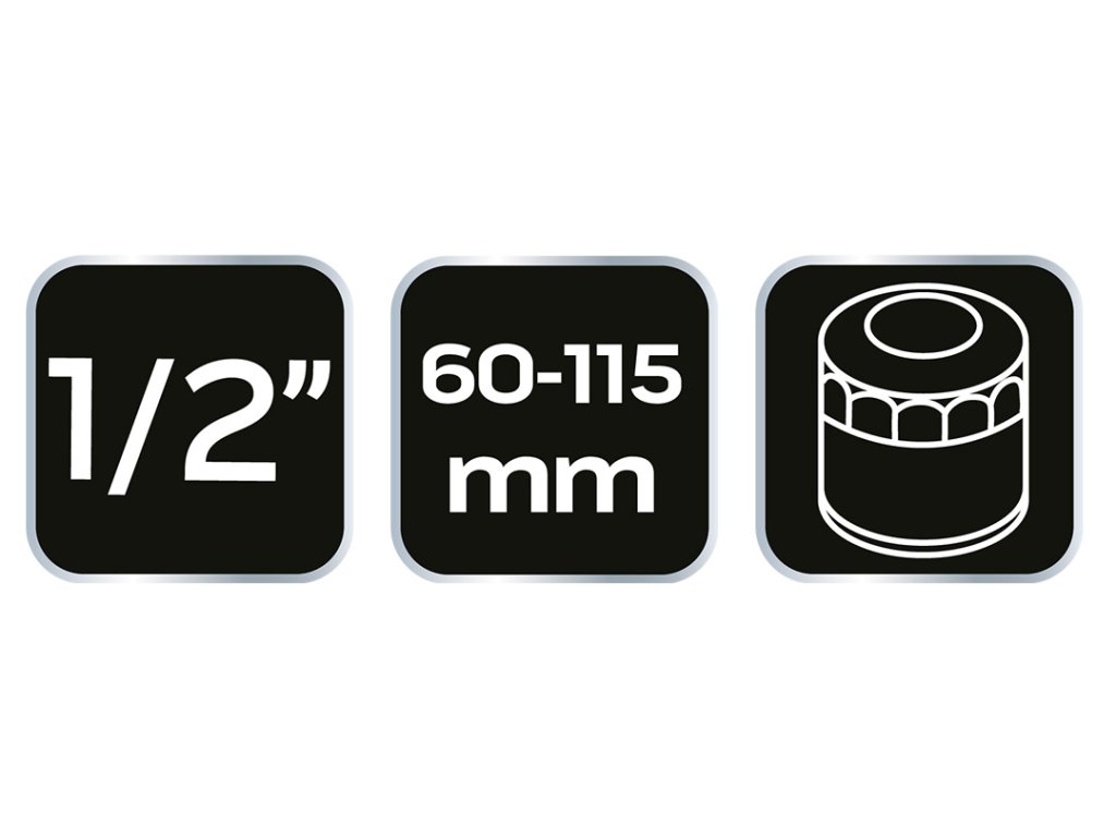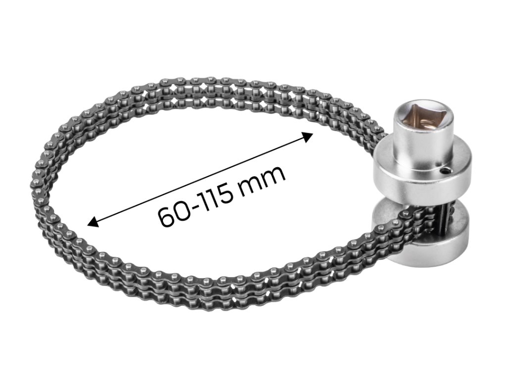 Kľúč na reťaze NEO určený pre mechanické dielne a autoservisy. Kľúč so štvorcovou rukoväťou 1/2" s dvojitou reťazou, určený pre oceľové olejové filtre s priemerom od 60 do 115 mm. Kľúč je vybavený samosvorným systémom na filtri.