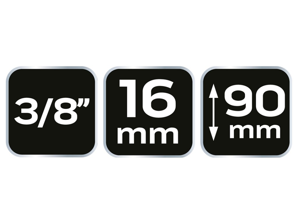 Kľúč na zapaľovacie sviečky 3/8" 16 x 90 mm, CrV oceľ, certifikát TÜV