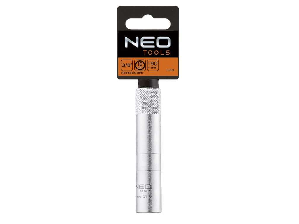 Kľúč na sviečky 3/8," 16 x 90 mm 11-153 od spoločnosti NEO je nástroj s 3/8" nástavcom a rozmermi 16 x 90 mm. Je vyrobený z odolnej chróm-vanádiovej ocele a osvedčí sa v mnohých situáciách. Kľúč umožňuje efektívne zaskrutkovanie a vyskrutkovanie zapaľovacích sviečok v motorových vozidlách. Vďaka robustnej konštrukcii je odolný a pohodlný na používanie. Kvalitu kľúča NEO potvrdzuje aj certifikát TÜV.