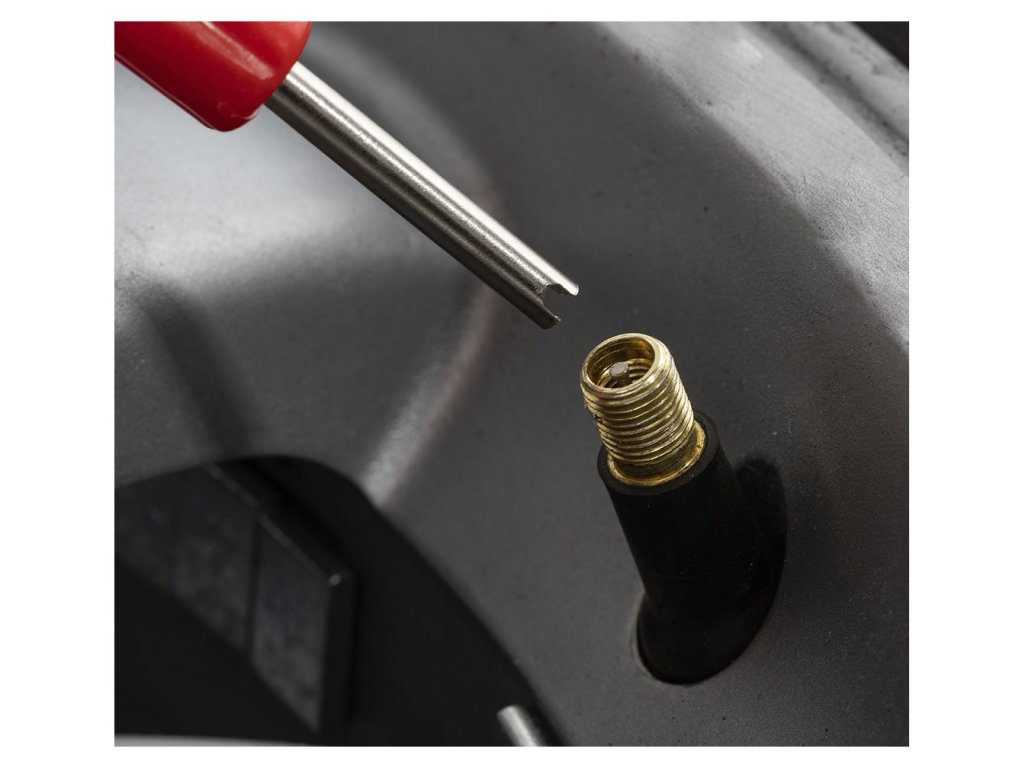 Pri nafúknutí pneumatiky sa vo ventile nachádza pružinová vložka, ktorú je potrebné vybrať kvôli uľahčeniu čerpania vzduchu. Vybratím vložky predídete jej poškodeniu vplyvom stlačeného vzduchu. Po dostatočnom doplnení pneumatiky a po odmeraní dosiahnutia požadovaného tlaku zaskrutkujte vložku pomocou kľúča spať do ventilu.