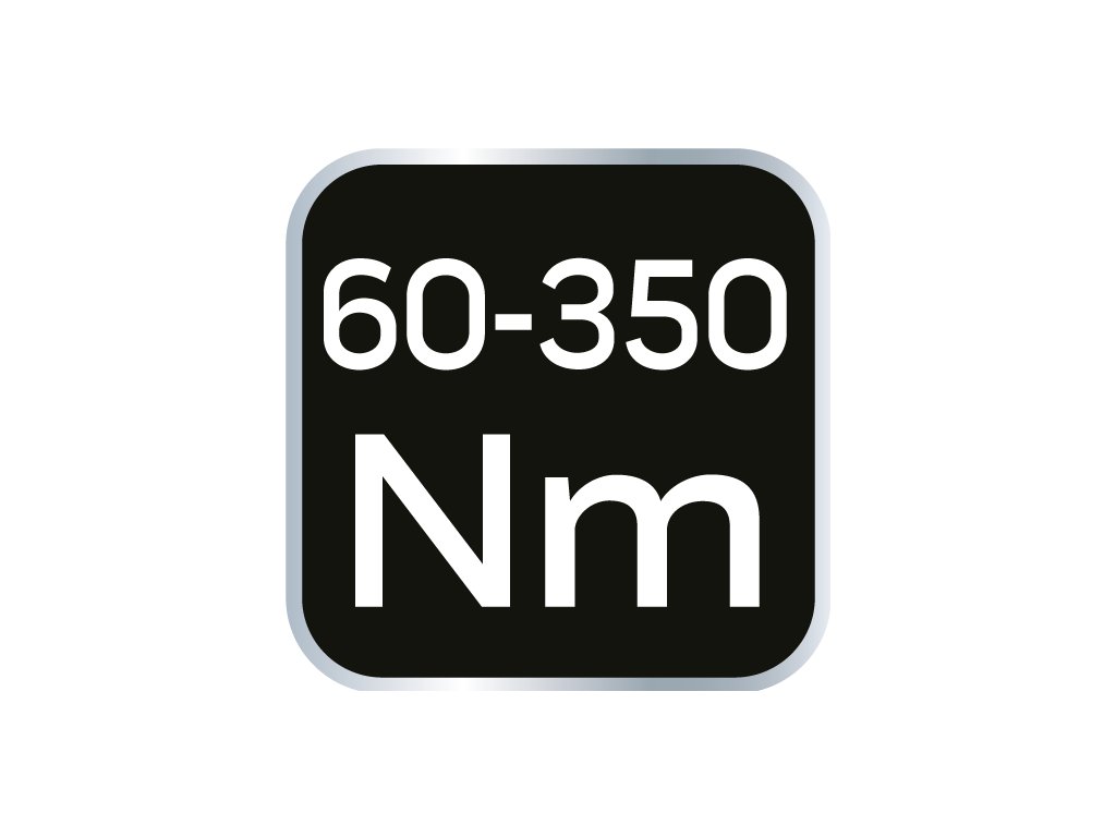 Momentový kľúč 1/2" x 720 mm, 60-350 Nm, so 45-zubovým račňovým mechanizmom, poistný krúžok, okienko so stupnicou, kľúč sa nesmie skladovať s pružinou nastavenou na maximálne hodnoty, kalibračný certifikát, CrV oceľ, plastové puzdro