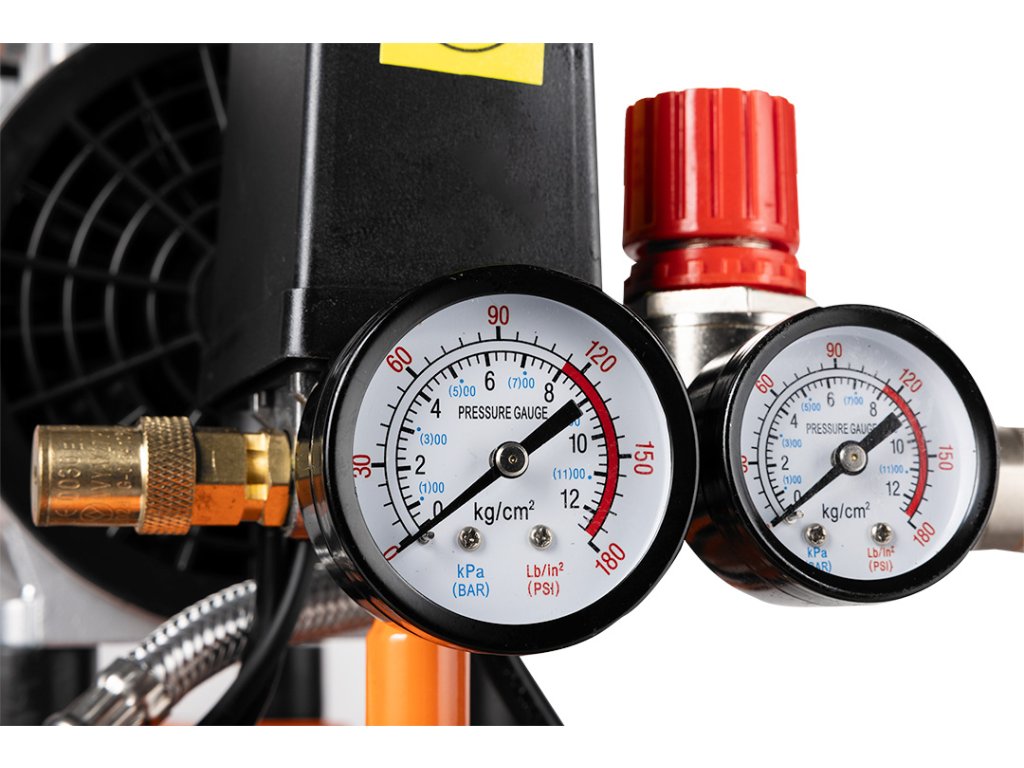 Bezolejový kompresor, objem nádrže 12 l, napájanie 230 V / 50 Hz, výkon motora 550 W, 1450 ot/min, výkon 95 l/min, maximálny tlak 8 bar (115 PSI), akustický tlak: 80 dB, IPX0, S1, trieda ochrany I, hmotnosť 15 kg, dva manometre, dve ?" prípojky, regulátor tlaku, rozmery nádrže: ?160*395, čas plnenia: 88 s.