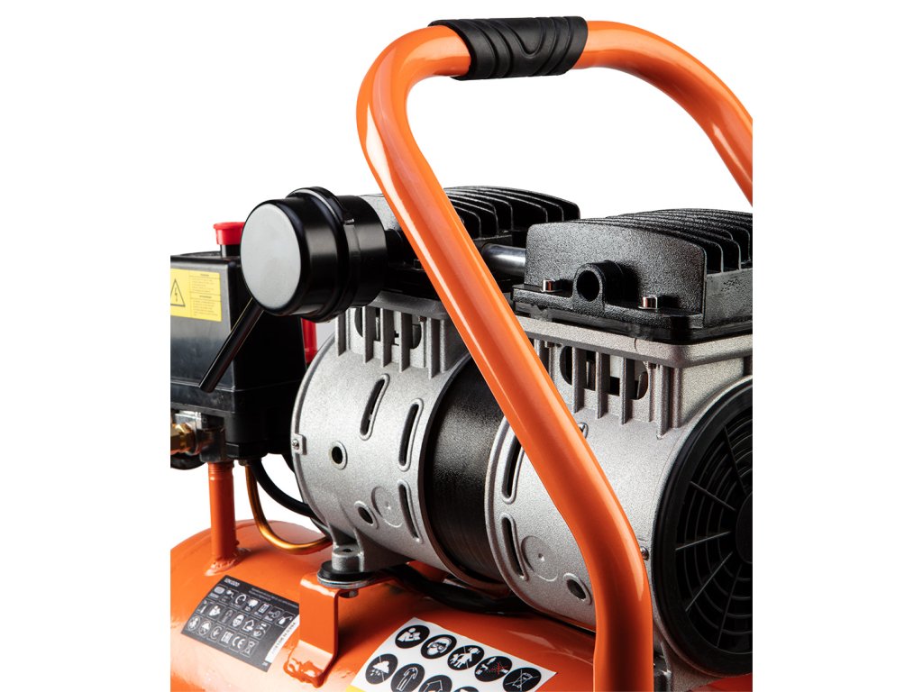 Bezolejový kompresor, 12 l, max. tlak 8 bar, 230V / 50HZ, výkon 500 W, indukčný motor, guľový vypúšťací ventil, spotreba vzduchu 95 l / min, intenzita zvuku 79 (61) dB