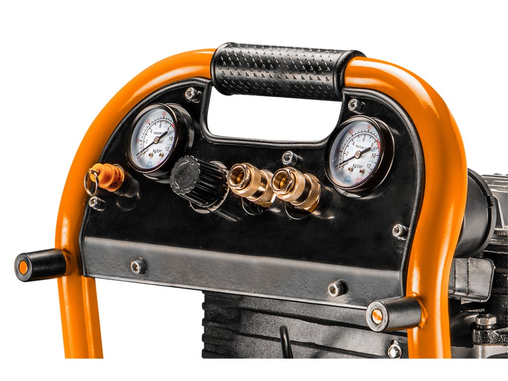 Olejový kompresor NEO 40l (ref.12K010) s výkonom 1500 W sa vďaka vertikálnemu umiestneniu nádrže vyznačuje kompaktnými rozmermi, ktoré uľahčujú jeho skladovanie. Pohodlný prístup k prípojkám, regulácii tlaku a manometrom umožňuje pohodlné používanie kompresora. Zariadenie sa osvedčí ako doplnok k vybaveniu dielne alebo garáže. Prepravu uľahčuje pohodlná rukoväť a kolieska. Napájanie zo siete 230 V ~ 50 Hz, objem 40 l. Možno použiť ako zdroj energie pre olejovú pištoľ, na odčerpávanie kolies automobilov a na iné drobné práce. Certifikát CE zaručuje súlad s európskymi bezpečnostnými normami.
