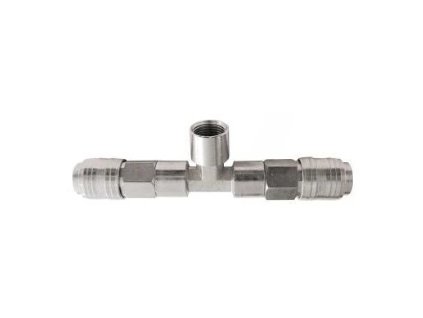 Pneumaticky rozbočovač typ T 3/8" s vnútorným závitom pre pripojenie 2 výstupných hadíc k jednému zdroju stlačeného vzduchu.