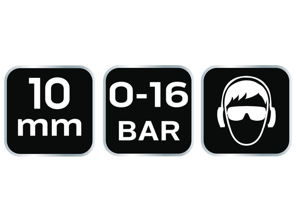 Rýchlospojka NEO (ref. 12-627) s výstupom pre hadicu s priemerom 10 mm, vyrobená z vysokokvalitnej mosadze, poniklovaná. Maximálny prevádzkový tlak 16 barov. Výrobok s označením CE potvrdzuje zhodu s bezpečnostnými smernicami. Značka NEO spĺňa očakávania profesionálov.