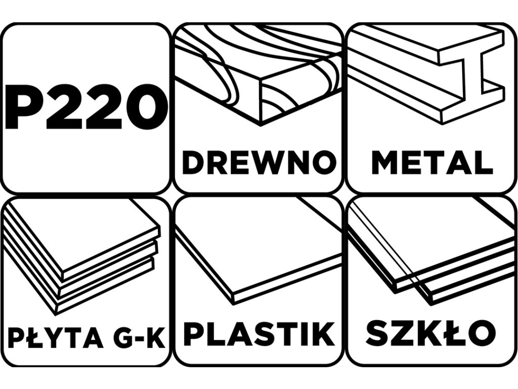 Biele brúsivo 115 x 280 mm, P220. Použitie drevo, kov, plast, sklo, sadrokartón, 2-stranné zrno, zrnitosť: biely oxid hlinitý, na ručné použitie.