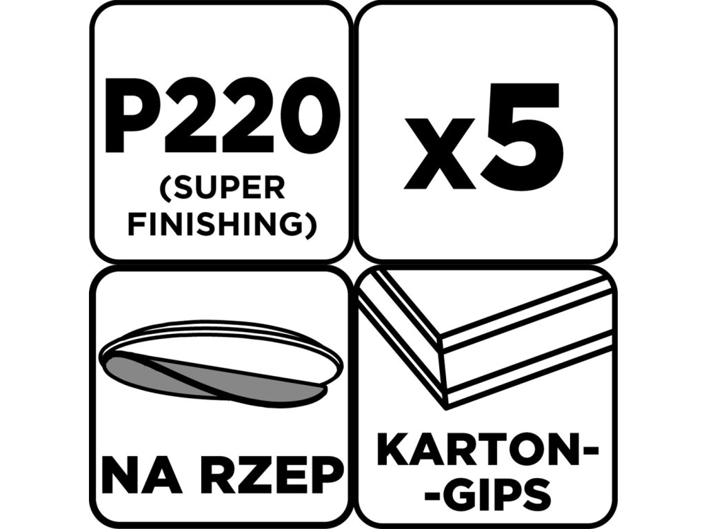 Brúsne kotúče, perforované, s otvormi na suchý zips 225 mm, P220, 5 ks. 58T277