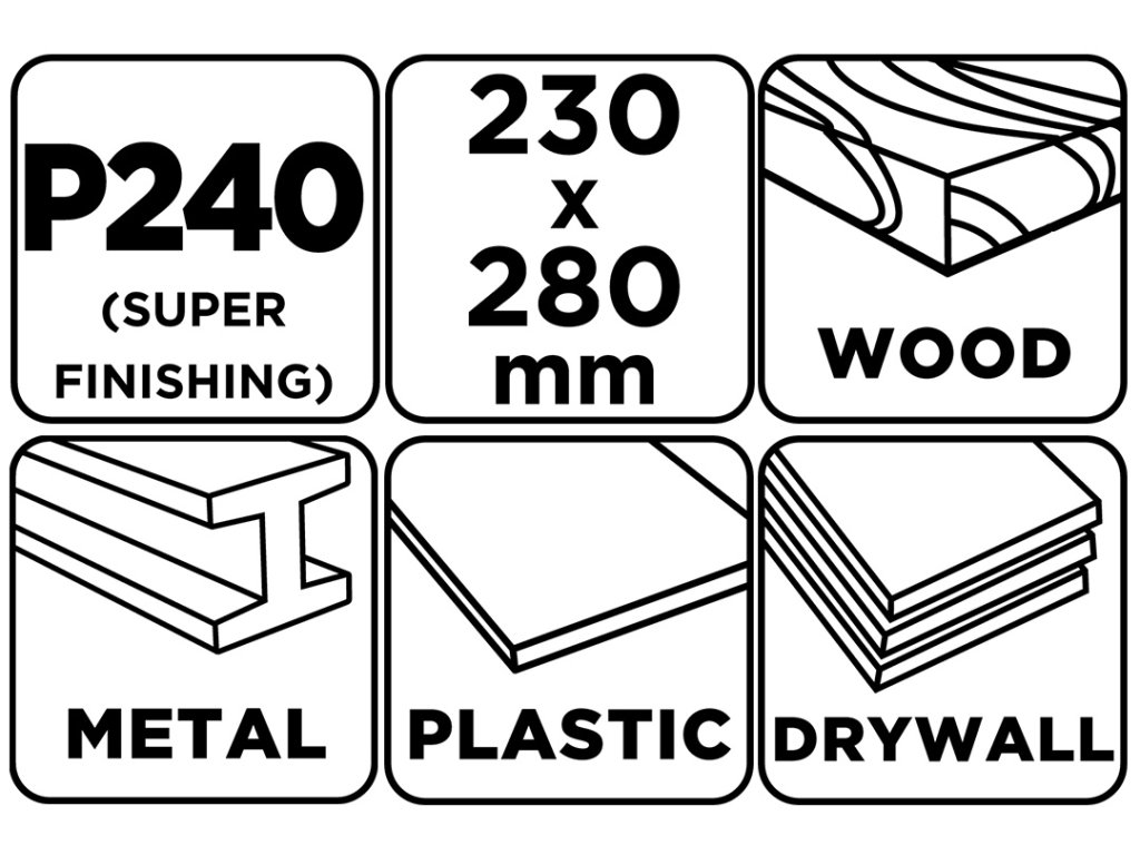 Brúsna tkanina 230 x 280 mm, P240, 58T351 od GRAPHITE je príslušenstvo s plnozrnným elektrokorundom a pružným podkladom JF. Má 100 % pokrytie a obsahuje spojivo zo syntetickej živice. Dobre sa s ním pracuje so sadrokartónom, drevom, kovom a plastmi. Brúsne plátno značky GRAPHITE sa odporúča na konečné vyhladenie náterov.