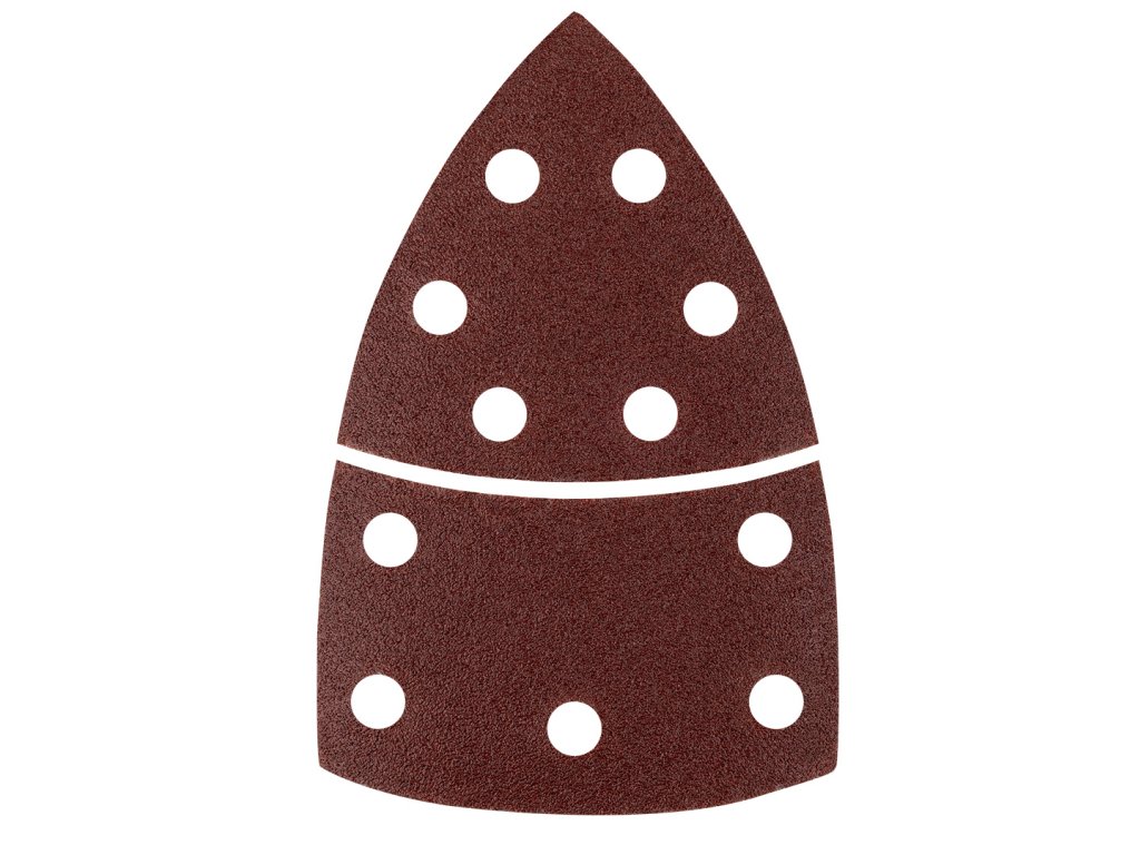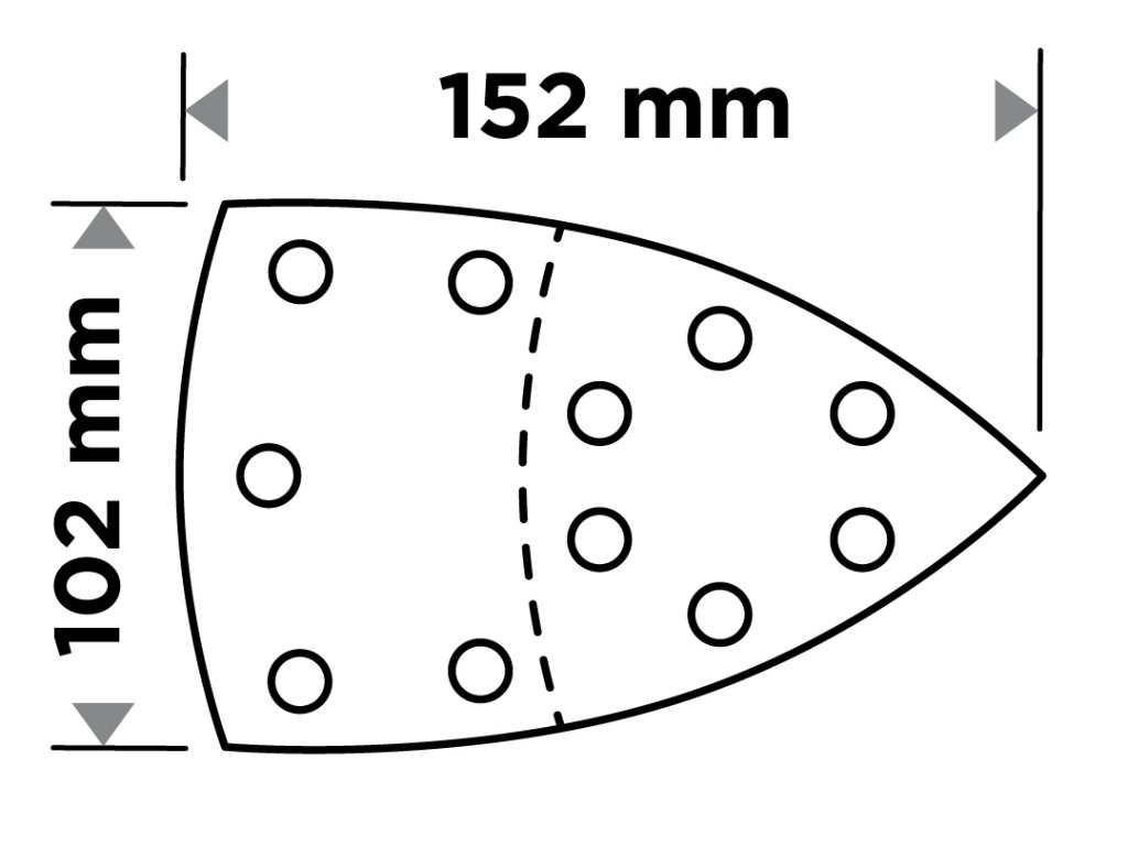 Brúsne papiere na suchý zips, žehlička 102 x 152 mm, P80, 5 kusov, s 11 otvormi 58T302 od GRAPHITE je sada 5 kusov brúsnych papierov na suchý zips, 102 x 152 mm. Vyznačujú sa výrezom v tvare tzv. žehličky - s možnosťou oddeliť jeden z kusov a nasadiť ho na brúsku s delta pätkou. Príslušenstvo má papierový podklad a elektrokorundový povlak. Sú určené na strojové použitie. Vďaka 11 otvorom na povrchu umožňujú ich použitie na brúskach vybavených systémom odsávania prachu. Upevnenie na suchý zips umožňuje rýchlu a jednoduchú výmenu brúsnych listov GRAPHITE. Sú vhodné na použitie na drevo, kov, plast, sklo a sadrokartón.