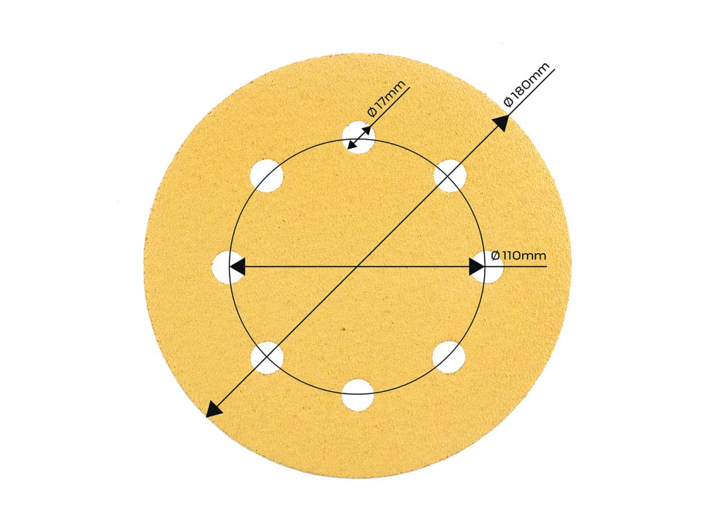 Brúsny papier so suchým zipsom 180 mm, K80, 5 ks, s 8 otvormi pre brúsku 59G263 54H022