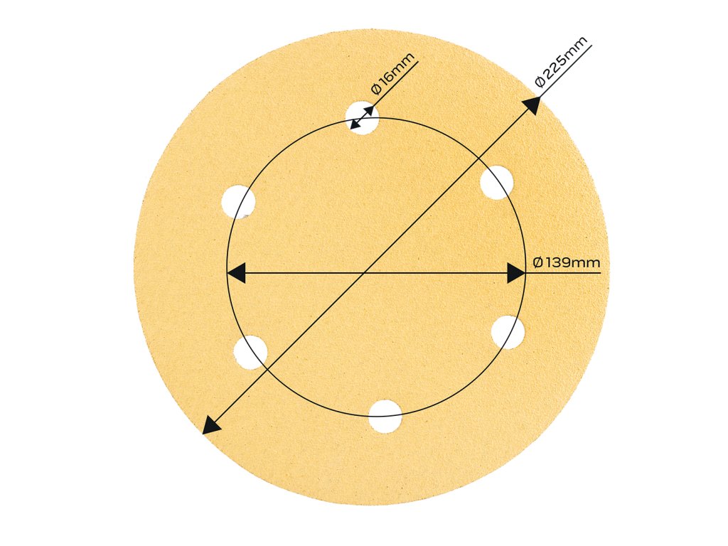 Brúsny papier so suchým zipsom 225 mm, K80, 5 ks, s 6 otvormi pre brúsku 59G264, 59G265 54H029