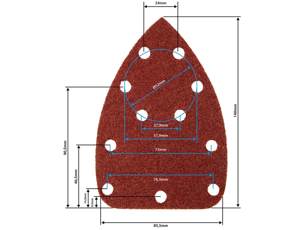 Brúsny papier so suchým zipsom delta 140 x 140 x 80 mm, K80, 5 ks, s otvormi 54H011