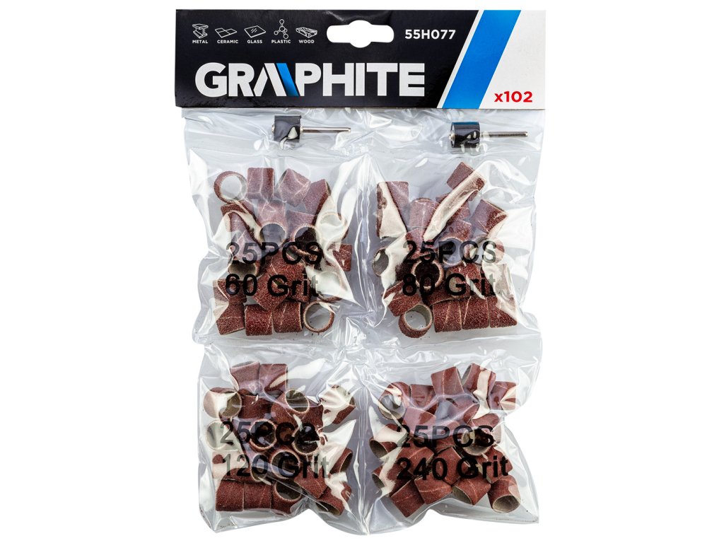 Brúsny pás GRAPHITE (ref. 55H077) s priemerom 12,7 mm a stupňovaním: K60, K80, K120 a K240. Určené na použitie s minibrúskou. Vhodná na brúsenie, tvarovanie a prípravu povrchov z kovu, keramiky, dlaždíc, kameňa, skla, plastu a sklenených vlákien.