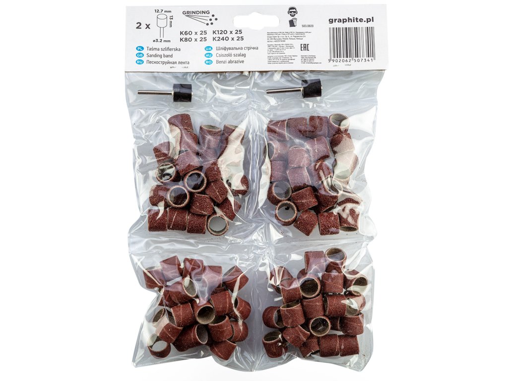 Brúsny pás 12,7 mm, K60, K80, K120, K240, sada 100 ks, + stopka 3,2 mm, 2 ks 55H077