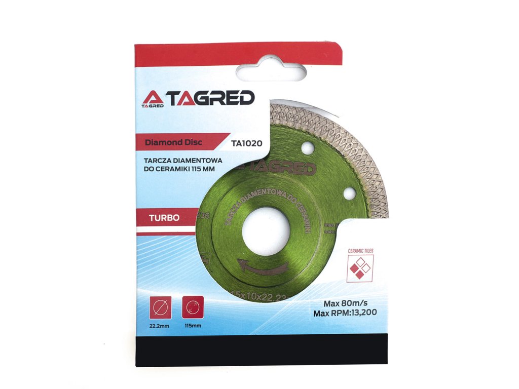 Profesionálny univerzálny diamantový kotúč TAGRED na rezanie granitu, mramoru, keramiky a terakoty pomocou ručných brúsok pracujúcich nasucho s upevnením 22,23 mm sa vyznačuje vysokou kultúrou práce, zabezpečuje rýchle a presné rezanie všetkých druhov granitu.