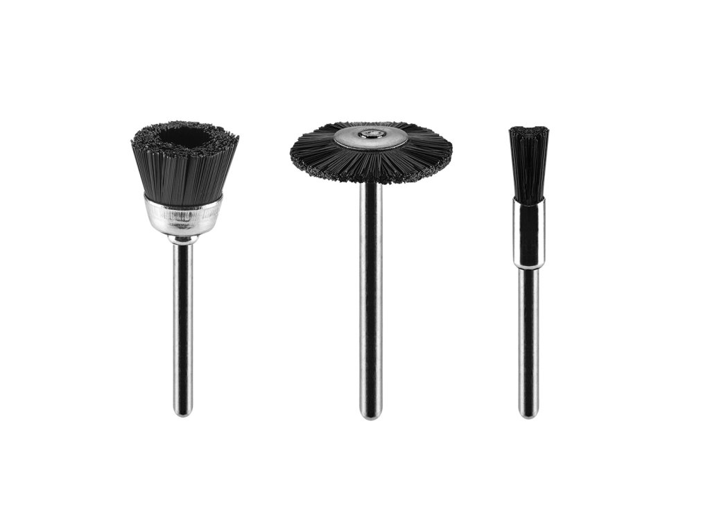 Kefky s nylonovými kefkami, veľkosť kefky 5 mm, veľkosť košíčka 15 mm, veľkosť kotúča 22 mm, nylonový drôt, sada. 3 ks