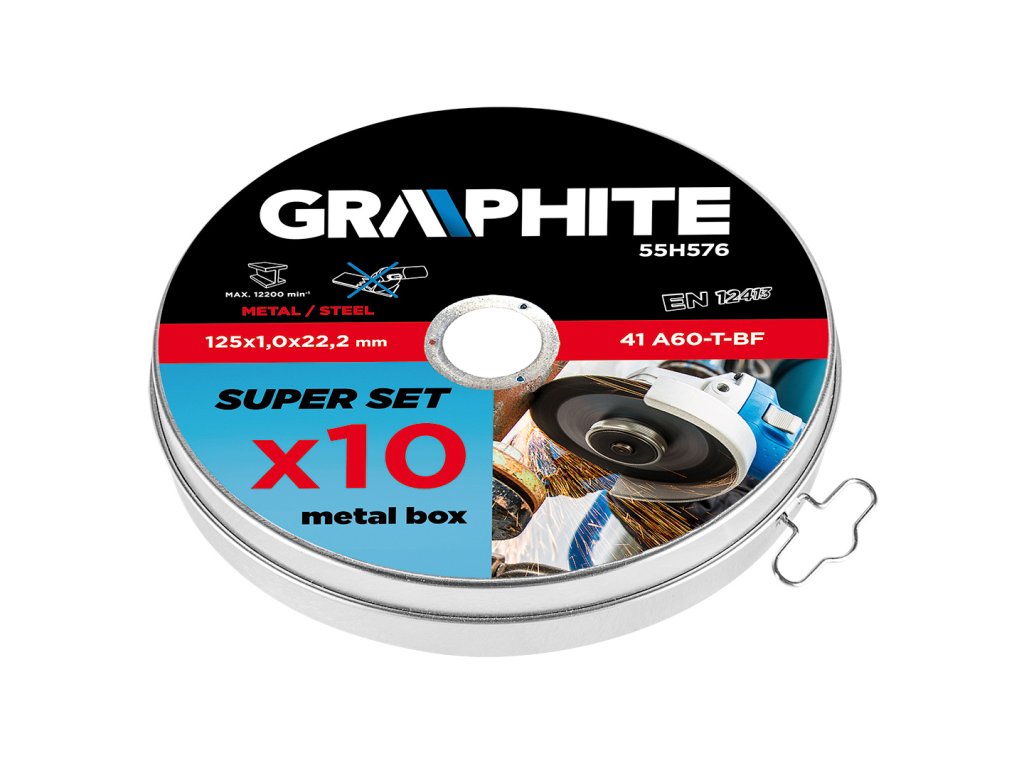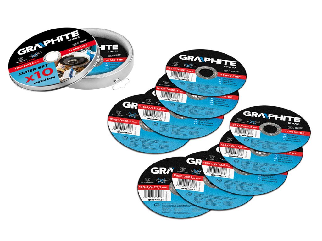 Kotúče na rezanie kovov GRAPHITE (ref. 55H576) s vonkajším priemerom 125 mm umožňujú výrazne skrátiť čas rezania vďaka pokročilej konštrukcii a zníženej hrúbke. Zaručuje vysokú úroveň bezpečnosti práce, pretože výrobok spĺňa normu EN 12413.