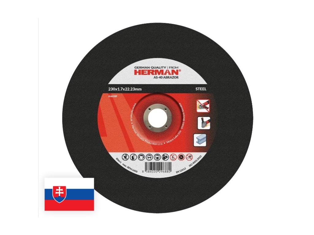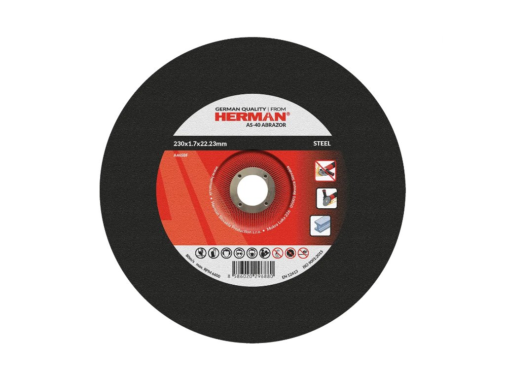 Rezný kotúč 230x22,2mm s hrúbkou 1,7 mm je určený na rezanie ocele korundovým brusivom, s prelisom.