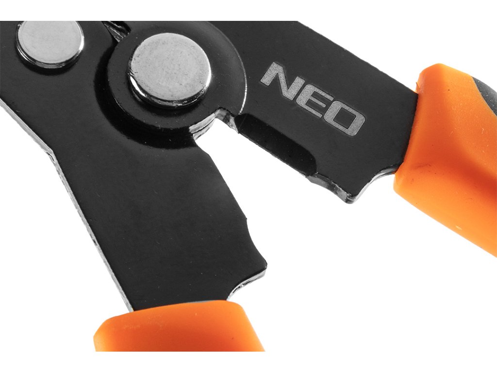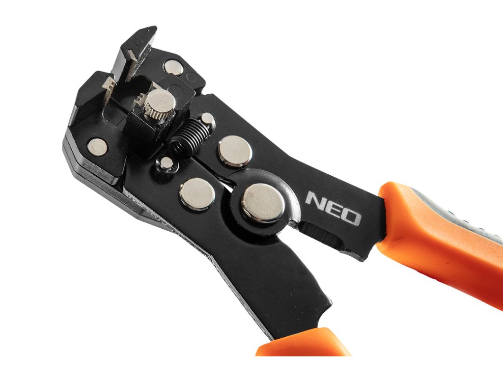 NEO automatický odstraňovač izolácie (ref. 01-534) predný, 160 mm veľký, sa používa na odstraňovanie izolácie a lisovanie konektorových svoriek. Pracovný rozsah na odstraňovanie izolácie od 0,5 do 6 mm2 (24-10 AWG) a na lisovanie koncoviek 1,5 až 6 mm2. Čeľuste sú vyrobené z extrémne pevnej ocele SK5 s tvrdosťou 52 - 60 HRC, čo zaručuje dlhodobú odolnosť nástroja. Nástroj je doplnený o rezačku drôtu a ergonomická rukoväť z dvoch materiálov zvyšuje pohodlie pri práci. Značka NEO spĺňa očakávania profesionálov.