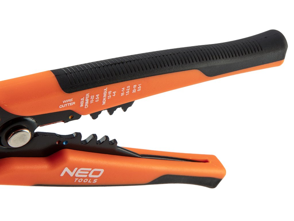 Krimpovacie kliešte s veľkosťou 200mm. Kliešte sa používajú na odstránenie izolácie a krimpovanie koncoviek konektorov. Rozsah odstraňovania izolácie: 0,5 - 6 mm (22-10 AWG). Krimpovanie koncoviek 0,5 - 8 mm. Pri výrobe čeľustí bola použitá kvalitná a odolná Cr12moV oceľ s tvrdosťou 52 - 60 HRC, to zaručuje dlhodobú životnosť a spoľahlivosť pri náročných prácach. Náradie je doplnené o strihač drôtu a komfort pri práci zvýši dvojmateriálová ergonomická rukoväť.