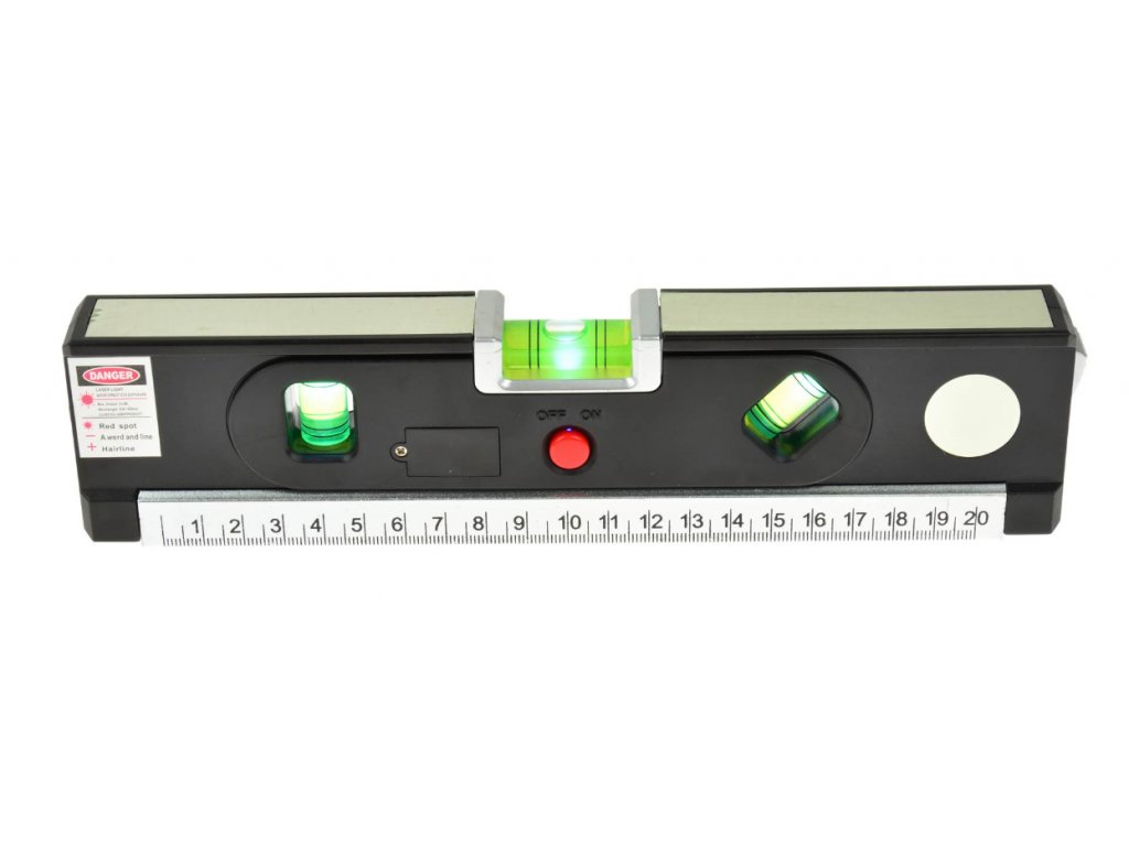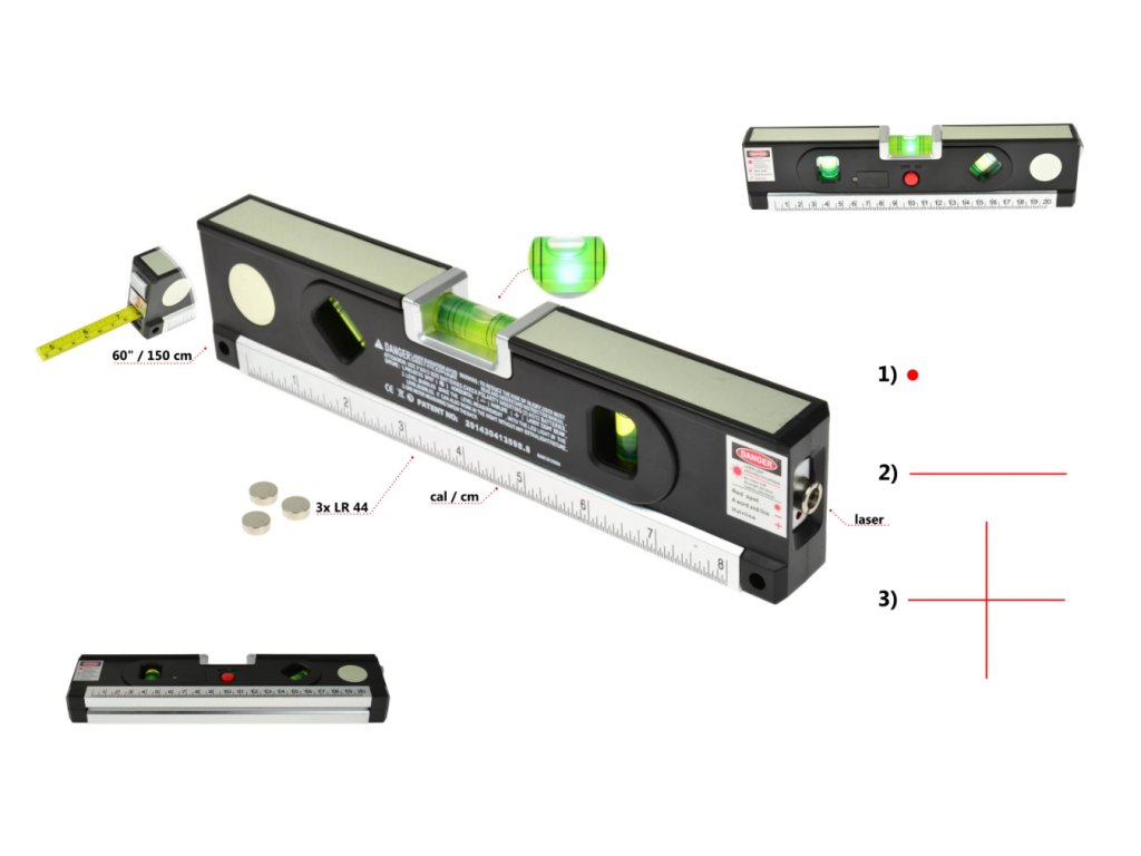 Multifunkčná laserová vodováha vyrobená z hliníka s metrom 1,5 m a 20 cm pravítkom. Vodováha je nepostrádateľný nástroj pre rôzne stavebné a rekonštrukčné práce. Laser funguje v troch režimoch a jednoducho ním zameráte akýkoľvek bod alebo rovinu. Napájaný je vďaka trom LR44 AG13 batériám.