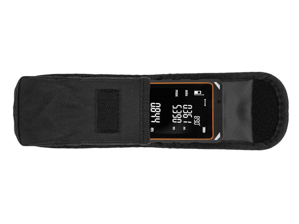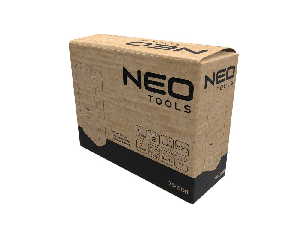 Laserový diaľkomer, dosah 80 m, IP54, 75-208 od spoločnosti NEO TOOLS je zariadenie vyrobené v triede ochrany IP54 a triede II. Vyznačuje sa dosahom od 0,05 do 80 m a dĺžkou laserového lúča približne 620-690 nm. Diaľkomer NEO TOOLS je napájaný 3 nabíjateľnými batériami AAA NI-MH alebo 3 alkalickými batériami AAA. Je vybavený pamäťou na posledných 50 meraní, ako aj možnosťou vynulovania údajov. Vďaka indikátoru stavu batérií a chybovým hláseniam sa jednoducho používa. Diaľkomer podporuje tieto meracie jednotky: m, in, ft. Pomocou neho môžete merať vzdialenosť, plochu, objem, jednotlivé a spojité merania, Pytagorovu sústavu, sčítanie a odčítanie, maximálne a minimálne meranie. Umožňuje tiež meranie od začiatku a konca zariadenia. Je vybavený elektronickým uhlomerom 0-90 stupňov a umožňuje používateľovi rýchlo a jednoducho určiť rôzne priestory. Laser tohto zariadenia má čas automatického vypnutia 30 sekúnd a samotný diaľkomer má čas automatického vypnutia 3 minúty. Je praktický a ľahký, jeho rozmery sú 120 x 50 x 25 mm. Ponúka sa s remienkom na zápästie, puzdrom na prenášanie, tromi batériami AAA a návodom. Bude dobre fungovať na profesionálne aj amatérske použitie.