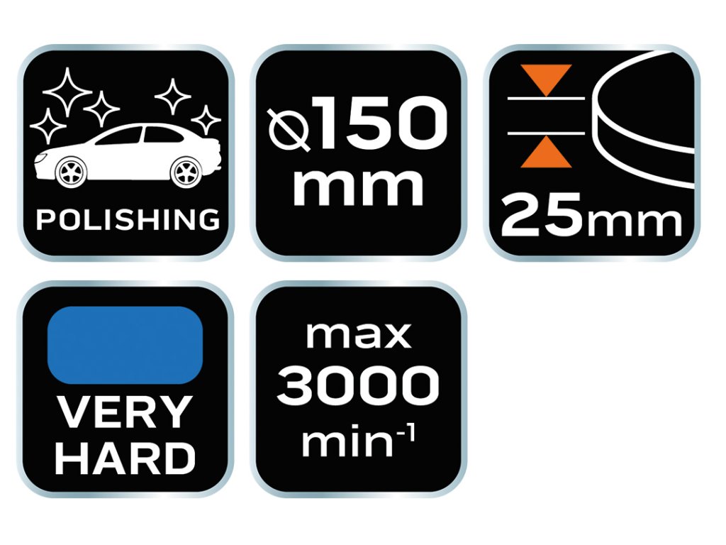 Leštiaci kotúč/podložka s montážou na suchý zips, vyrobený z kvalitnej polyuretánovej peny. Kotúč je určený pre rotačné a excentricko-rotačné leštičky a upína sa pomocou suchého zipsu. Táto veľmi tvrdá špongia sa v kombinácii so stredne abrazívnou pastou používa na odstraňovanie škrabancov a iných nedokonalostí náteru.