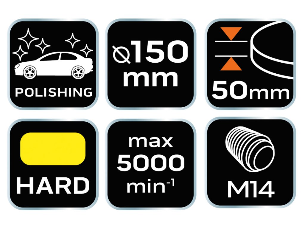 Leštiaci kotúč/podložka s montážnym závitom, vyrobený z kvalitnej polyuretánovej peny. Kotúč je určený pre rotačné leštičky a upína sa pomocou závitu M14. Tvrdá špongia v kombinácii s leštiacou pastou vysokej alebo strednej abrazivity umožňuje efektívne odstraňovanie hlbokých škrabancov z lakovaných povrchov a zároveň umožňuje pripraviť povrch na ďalšie spracovanie.