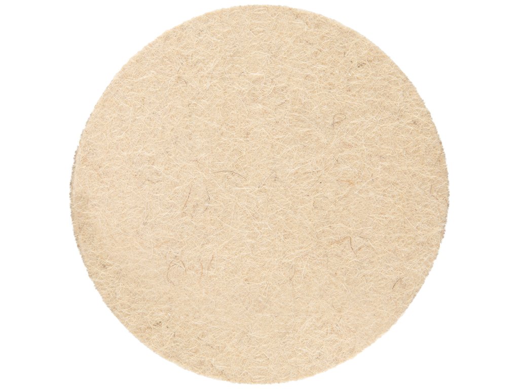 Leštiaca plsť z kvalitne stlačenej prírodnej vlny. Priemer: 75mm, hrúbka: 10mm, závit: M14.
