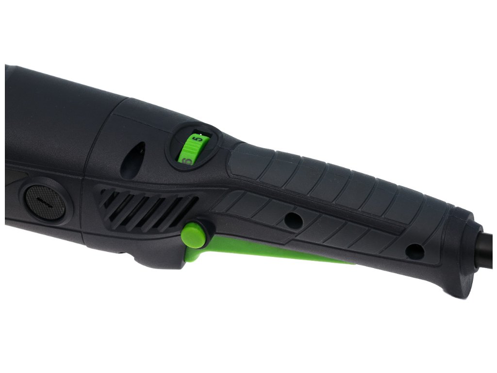 Regulácia otáčok v rozsahu 2100 - 5000 ot./ min. zaručuje možnosť prispôsobenia otáčok primerane vykonávanej práci a použitému brúsnemu materiálu. Leštička sa vyznačuje vysokým výkonom a dobrým spracovaním. Komponenty leštičky sú vyrobené zo 100% kovových materiálov, čo zaisťuje ešte dlhšiu životnosť.
