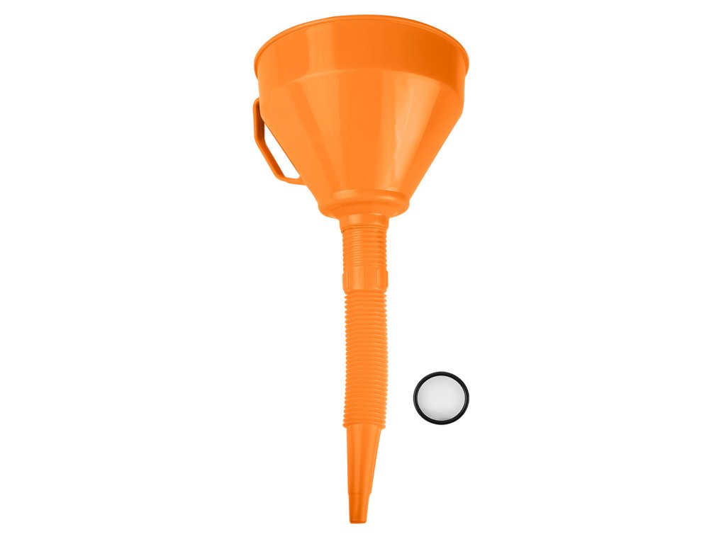 Dlhý lievik s ohybnou špičkou 11-555-1 od spoločnosti NEO TOOLS je lievik vyrobený z ľahko čistiteľného PP s priemerom 160 mm a dĺžkou 180 + 250 mm, ktorý je určený na nalievanie tekutín do ťažko prístupných miest. Vďaka vysokému okraju, ktorý zabraňuje pretečeniu a chráni pred postriekaním, ako aj odolnosti voči olejom, kyselinám a pohonným hmotám sa tento výrobok odporúča na náročné použitie v priemysle a dielni. Lievik je vhodný aj na uzávery palivových nádrží automobilov a iné plniace otvory s malým priemerom. Má bezpečnostnú rukoväť a vymeniteľné jemné mosadzné sitko na jednoduchú filtráciu. Dlhý lievik NEO TOOLS s flexibilnou špičkou sa odporúča pre mechanikov a domácich majstrov.