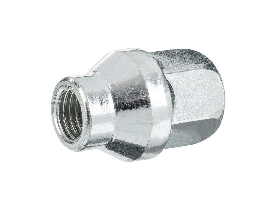 Application: for steel and alloy wheels Nut size: M12 Thread pitch: 1.5 mm Total height: 34 mm Head type: exetended and tapered Wrench size: 19 Extension height: 6 mm Extension diameter: 16 mm Tapered end width: 24 mm Nut hardness: 8.8 Nut end: closed / covered Nut coating: zync