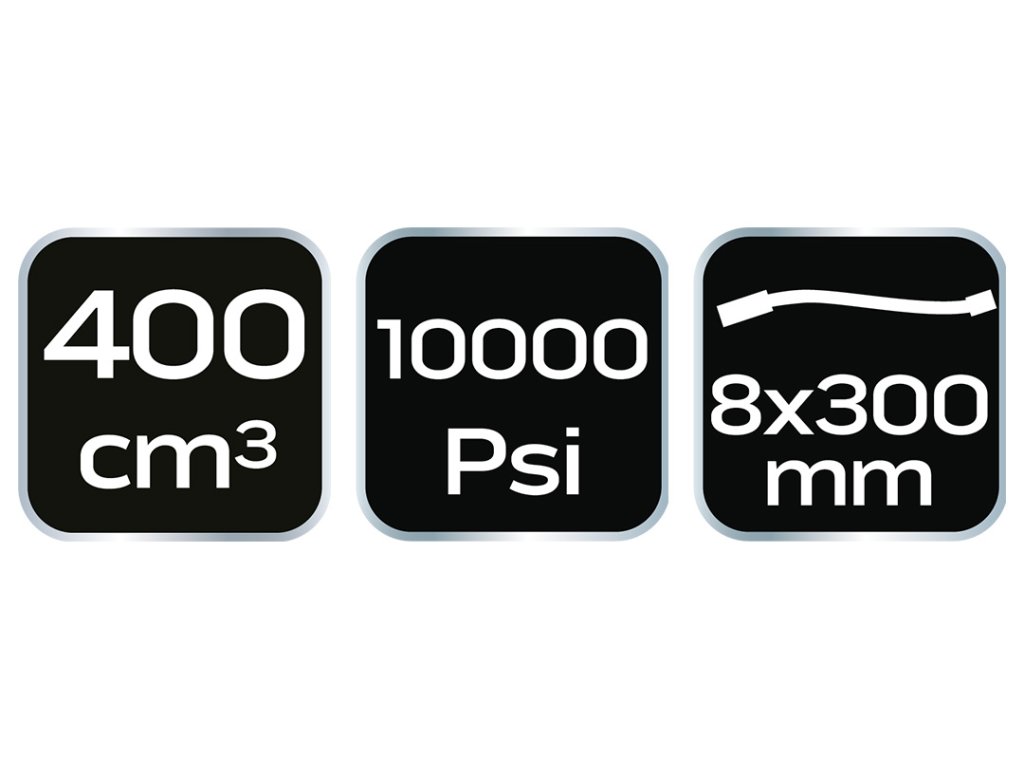 Páková mazacia pištoľ 400 cm3 s hadicou 8x300 mm, max. tlak 10000 Psi