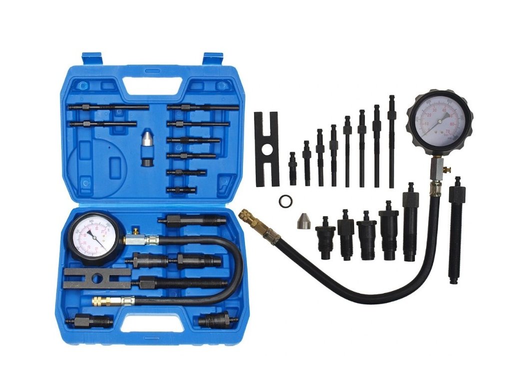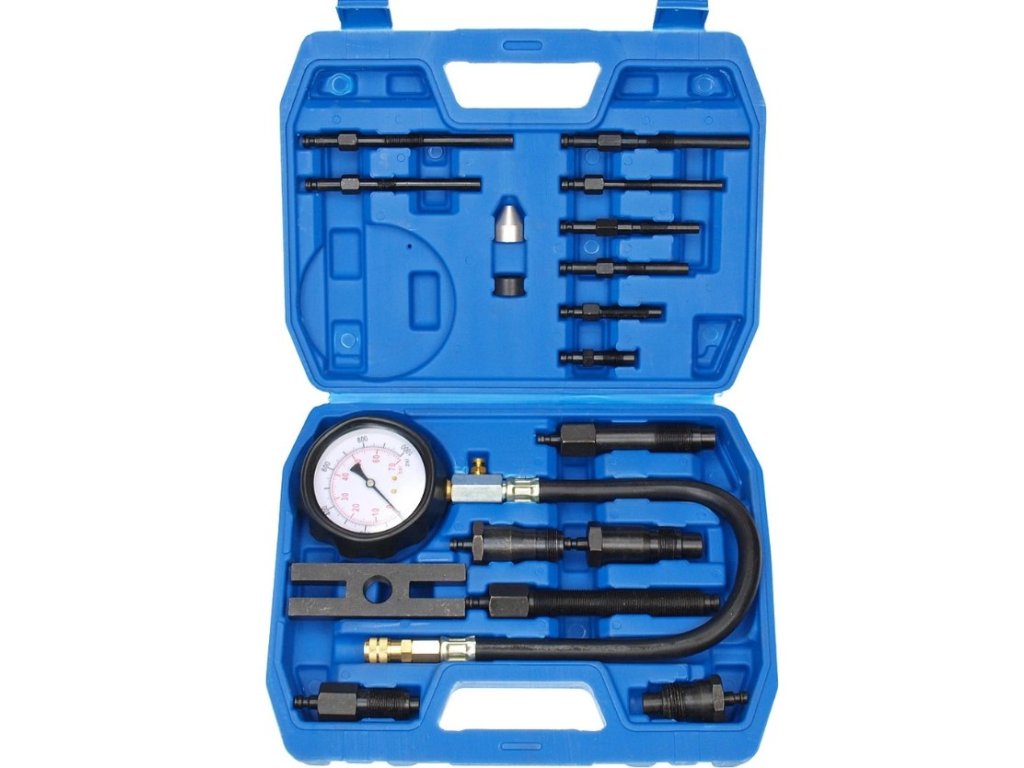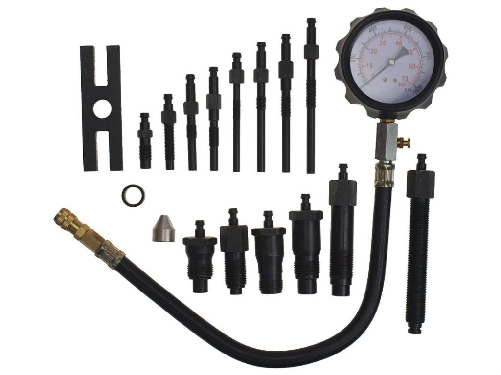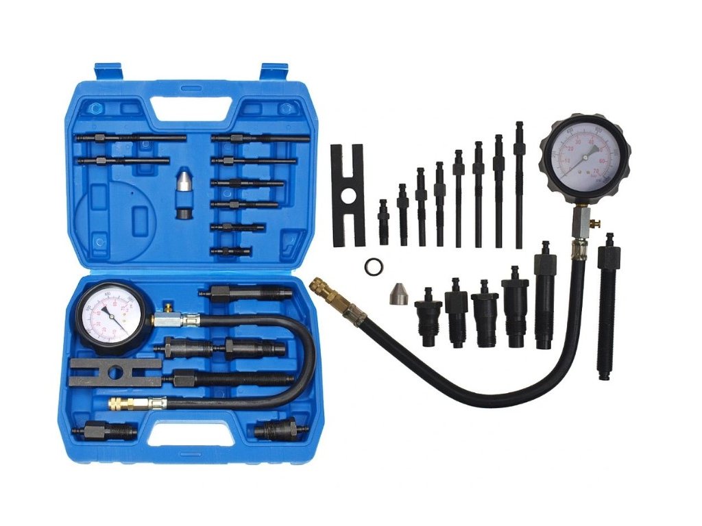 Kompresiometer meria kompresný tlak naftových motorov prostredníctvom žhaviča alebo vstreku. Táto šikovná sada adaptérov pre žhaviče a vstrekovače má adaptéry, ktoré využijete najmä pre staršie typy vstrekovania ako sú traktory Zetor, či iné. Poistný ventil s tlakom umožňuje opakovanie testu bez demontáže manometra a hadica vám umožní sa dostať k ťažšie prístupným sviečkam a vstrekovačom.