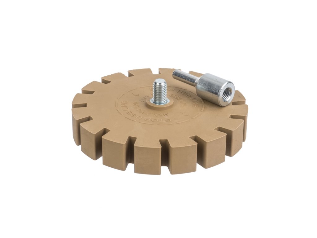 Vrúbkovaný gumený kotúč na odstraňovanie zvyškov lepidla z lepiacich závaží. Priemer 100 mm. Max. rýchlosť otáčania 3500 ot./min. Adaptér súčasťou.