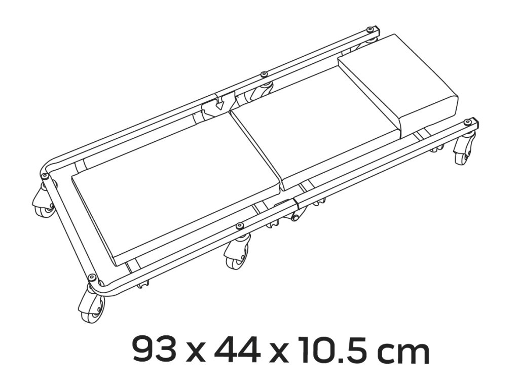 Skladací pracovný stôl, 930 x 440 x 105 mm, 6 otočných koliesok, mäkké polstrovanie. Nosnosť 110kg.