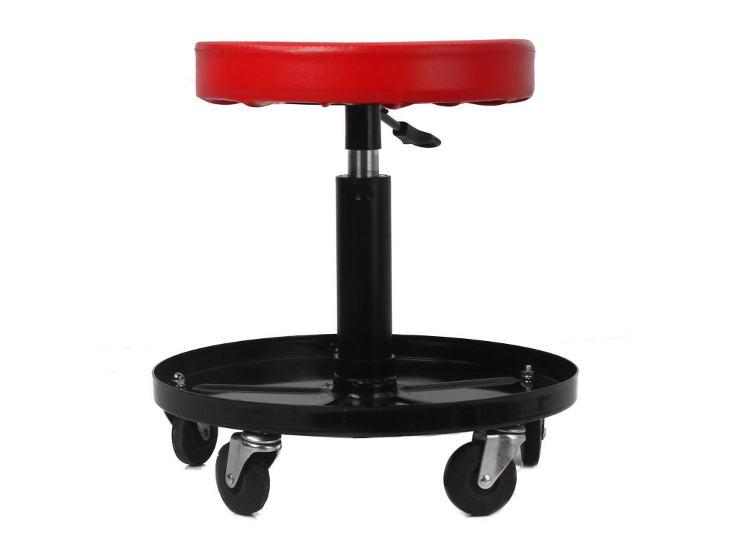 Táto stolička je presne to, čo potrebuješ do dielne: mimoriadne pohodlná, spoľahlivá a navrhnutá tak, aby sa prispôsobila tvojej práci. Jednoduchý, kompaktný dizajn nezaberie miesto, no keď treba, je okamžite mobilná – vďaka 4 otočným kolieskam s guľôčkovými ložiskami sa presunieš od kolesa k motoru bez zbytočného vstávania.