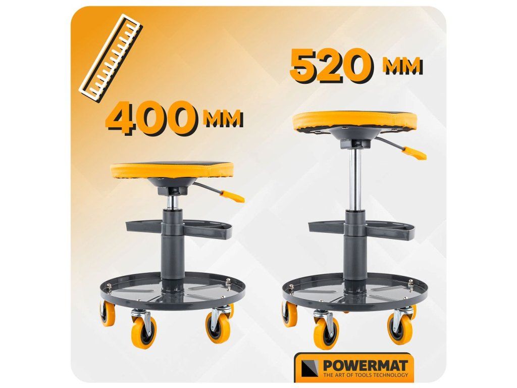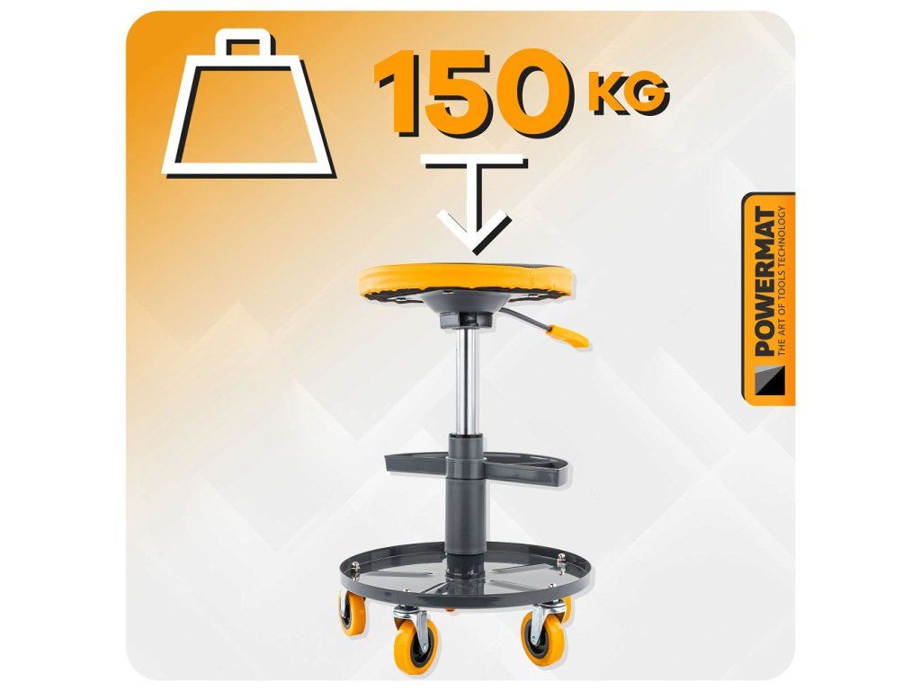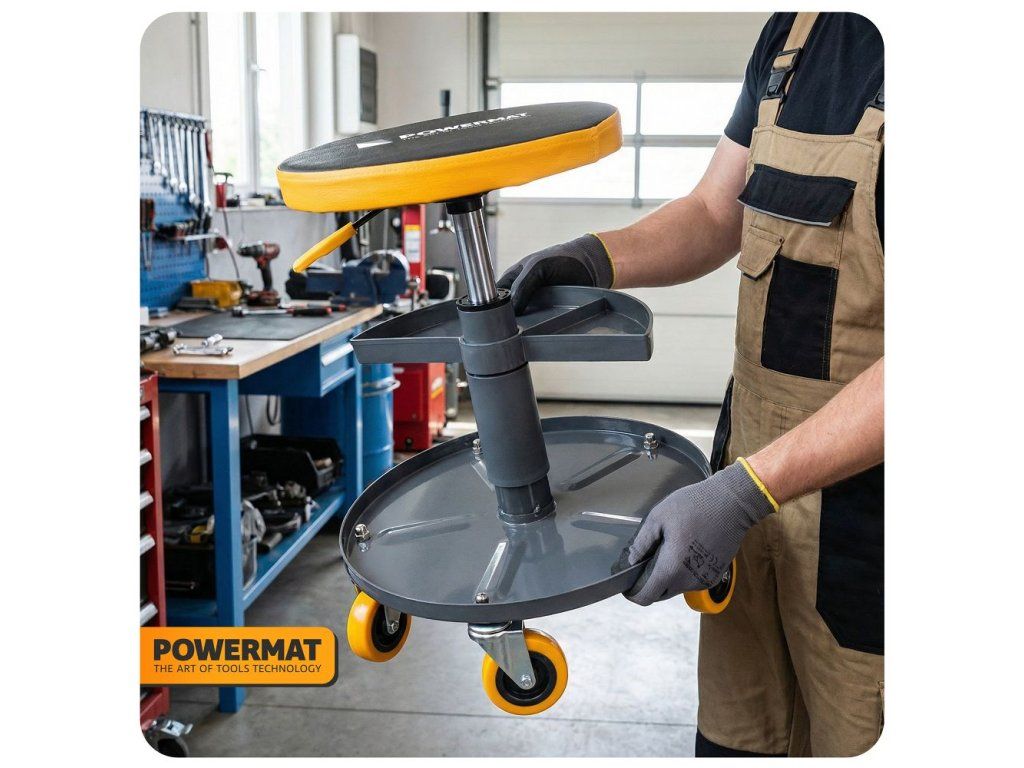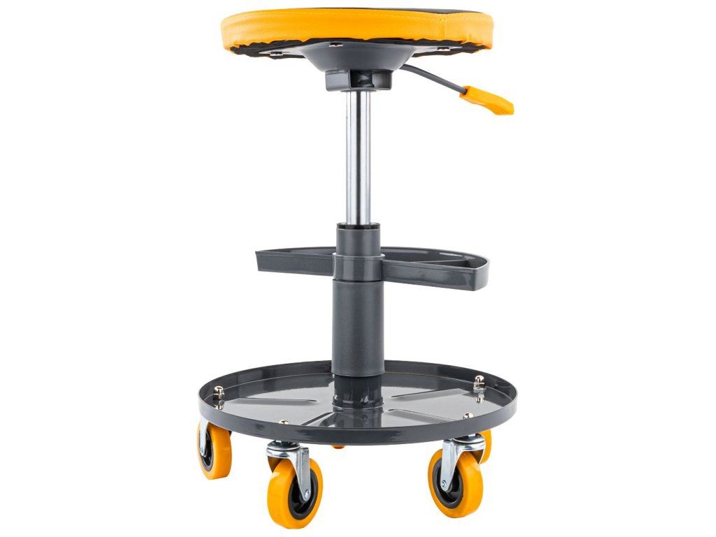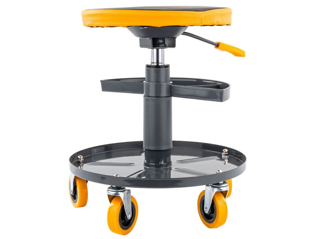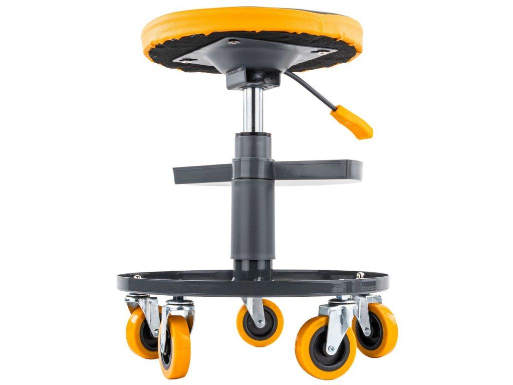 Praktická a kompaktná dielenská stolička navrhnutá pre pohodlnú prácu pri údržbe, opravách a montážnych úkonoch. Vďaka nastaviteľnej výške 40 – 52 cm umožňuje pracovať pri nízko položených častiach bez zbytočného zohýbania, čím znižuje únavu počas práce.