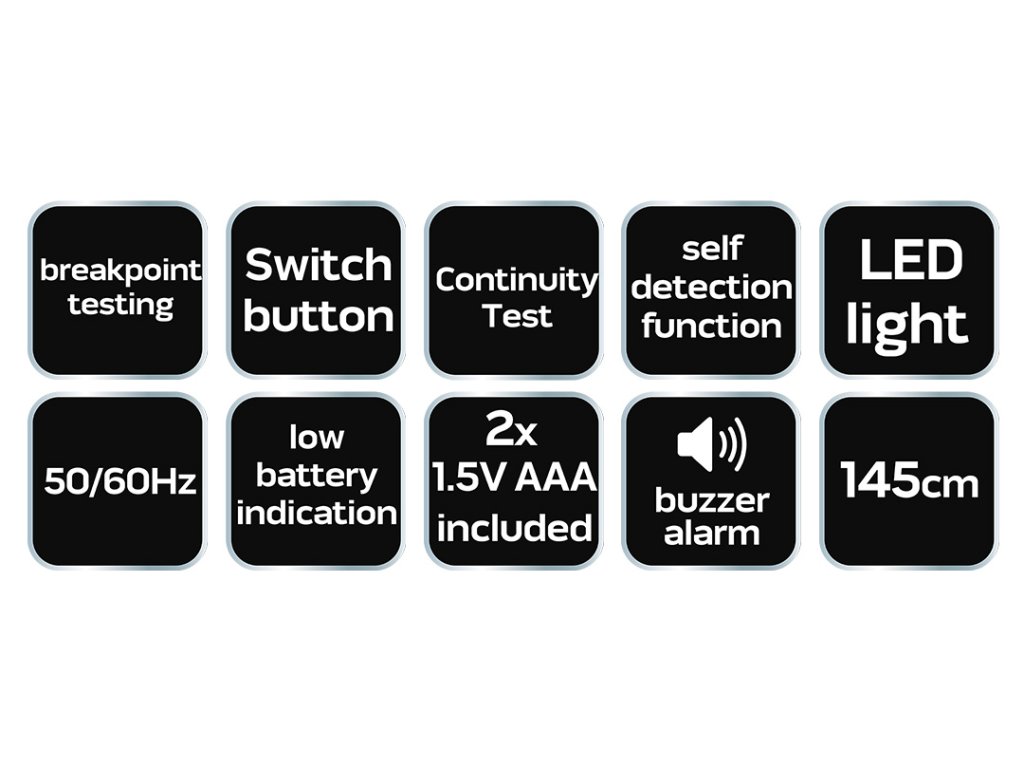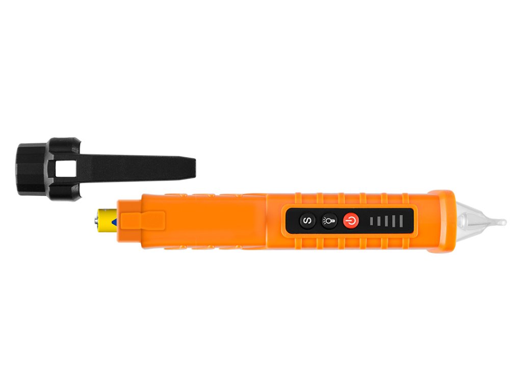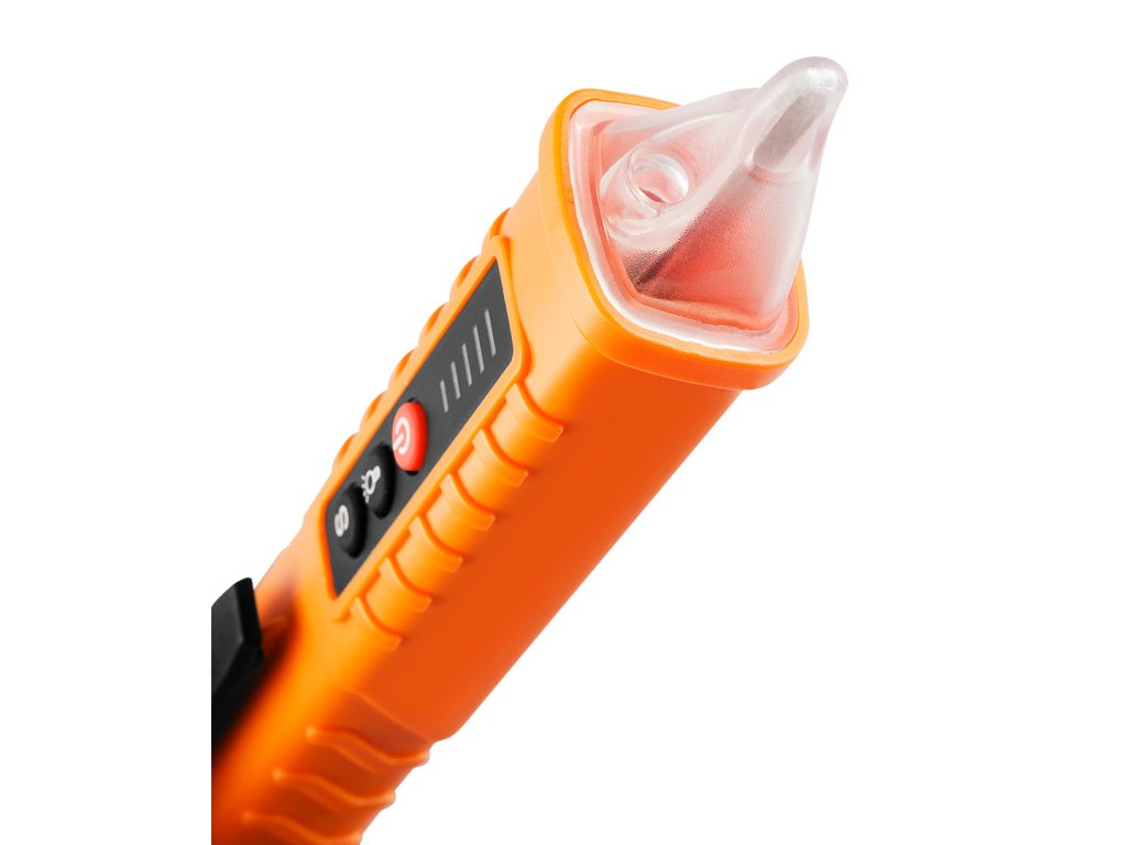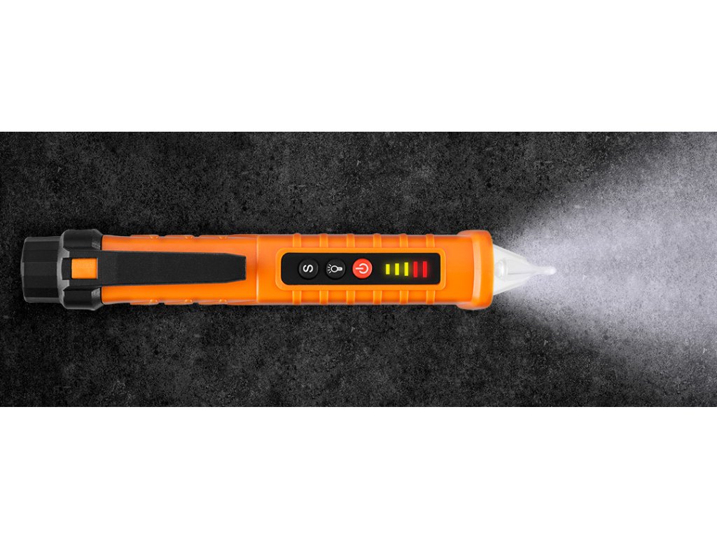 Indukčná skúšačka napätia 12-1000 V AC 94-007 od spoločnosti NEO podporujúca dotykovú (70-250 V AC) a bezdotykovú (70-1000 V AC) metódu. Má celkovú dĺžku 145 mm. Je vybavená asistenčným LED svetlom, zvukovým indikátorom, indikátorom vybitia batérie a praktickým vreckovým klipom. Určený na lokalizáciu porúch v izolovaných striedavých kábloch, kontrolu fázy v zásuvkách striedavého prúdu a lokalizáciu vodičov pod napätím v stene pod omietkou. Skúšačka napätia značky NEO je vybavená napájaním 2x AAA. Frekvencia je 50/60 Hz. Má funkciu testu bodu zlomu a testu kontinuity. Je to nástroj, ktorý dokáže ľahko nájsť poruchu v elektrickej inštalácii.