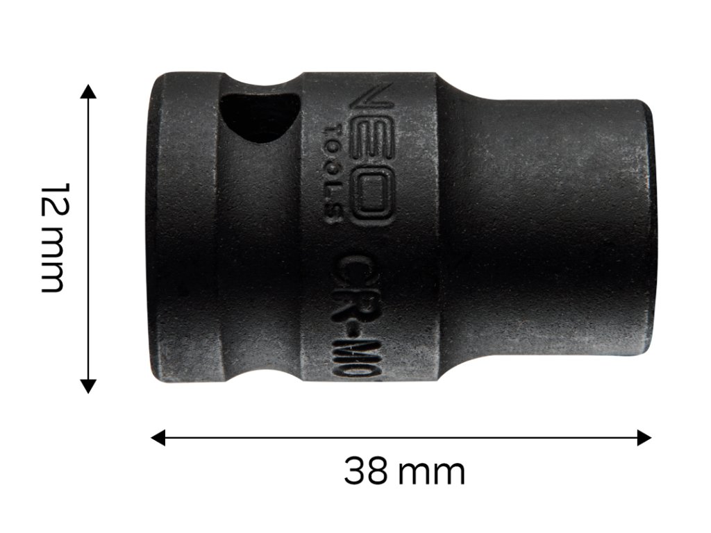 Rázová hlavica 12 mm, 1/2" NEO (ref. 12-212). Vyrobené z odolnej chróm-molybdénovej ocele. Zhrubnuté steny zásuvky zaručujú jej vysokú odolnosť. Značka NEO spĺňa očakávania profesionálov.