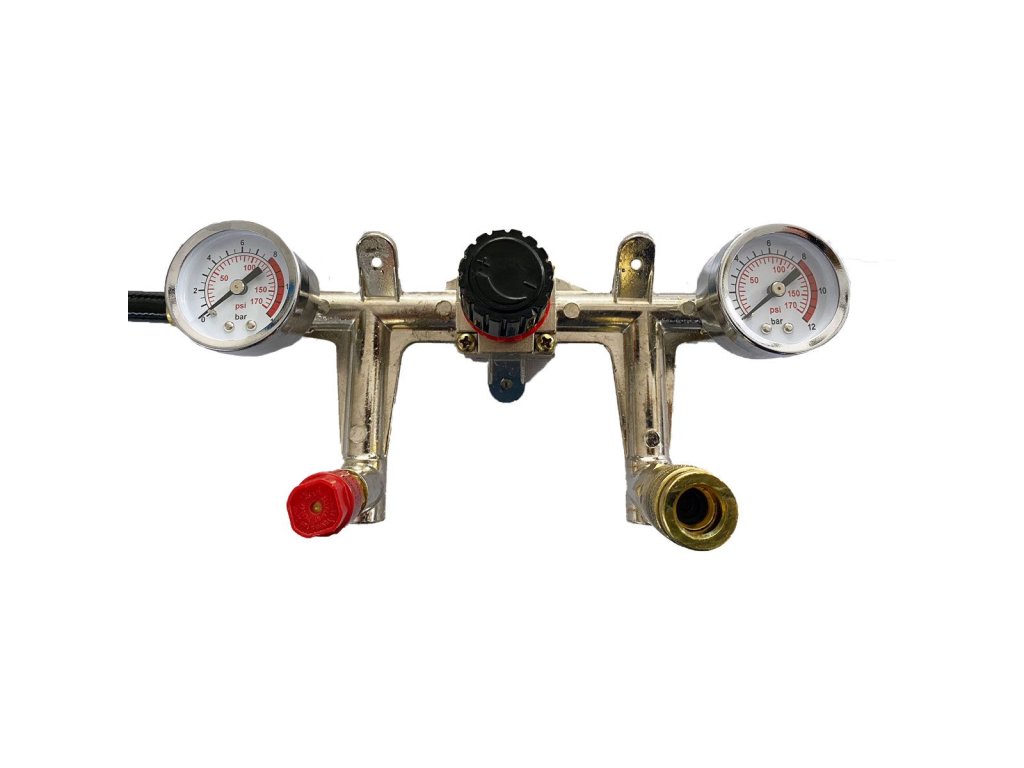 Reduktor tlaku s tlakovým spínačom, 2 manometrami, poistným ventilom a rýchlospojkou 36851-59-1