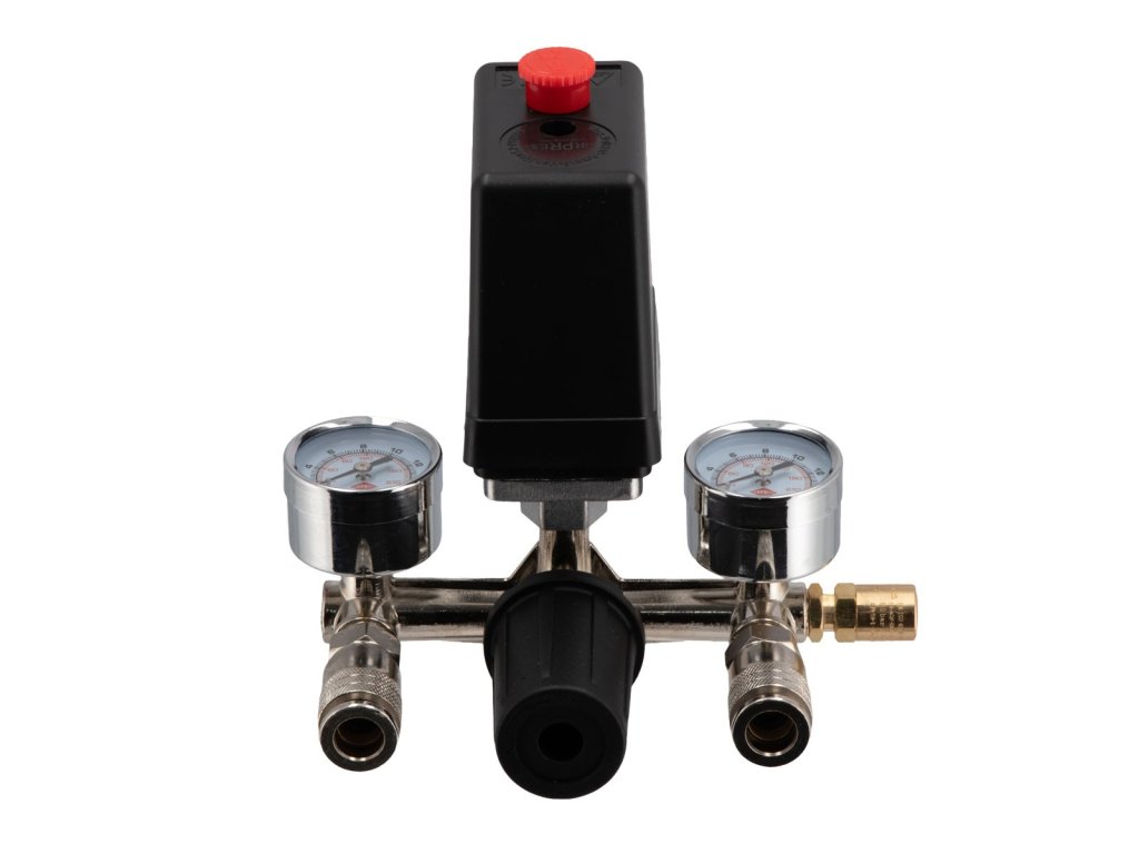 Regulátor tlaku s tlakovým spínačom, 2 manometrami a 2 rýchlospojkami 36840-R