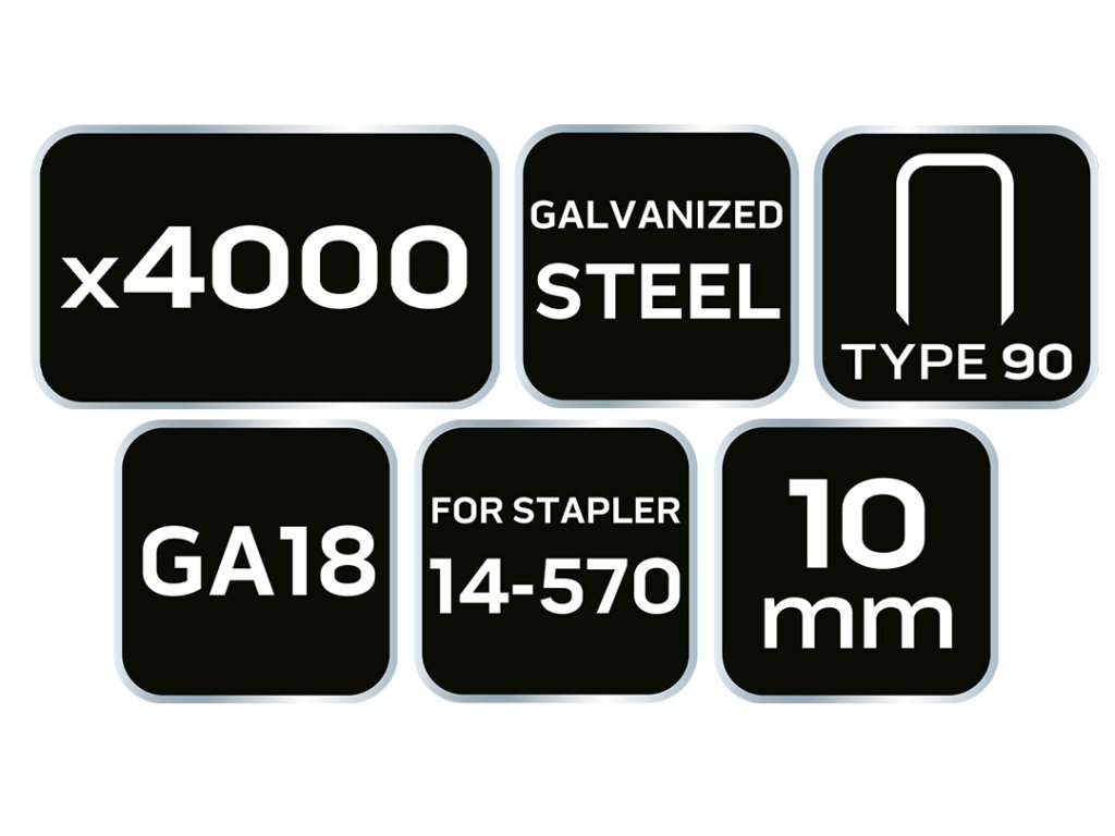 Pozinkované sponky pre pneumatické sponkovačky, GA18, typ 90 (4K), dĺžka 10 mm, 4000 s 14-620